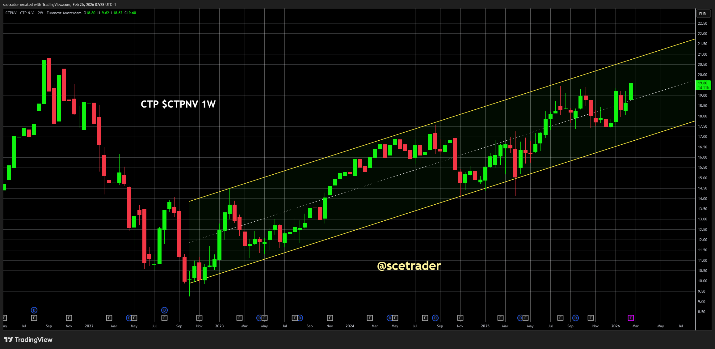 Onze visie is dat CTP zich in een krachtige operationele en financiële opwaartse trend bevindt. Het aandeel noteert in een fraaie uptrend op de chart en wordt fundamenteel ondersteund door stijgende huurinkomsten, groei van de portefeuille en een oplopende winst per aandeel. De kans op verdere koersstijging is duidelijk aanwezig, mits de balansdiscipline behouden blijft.