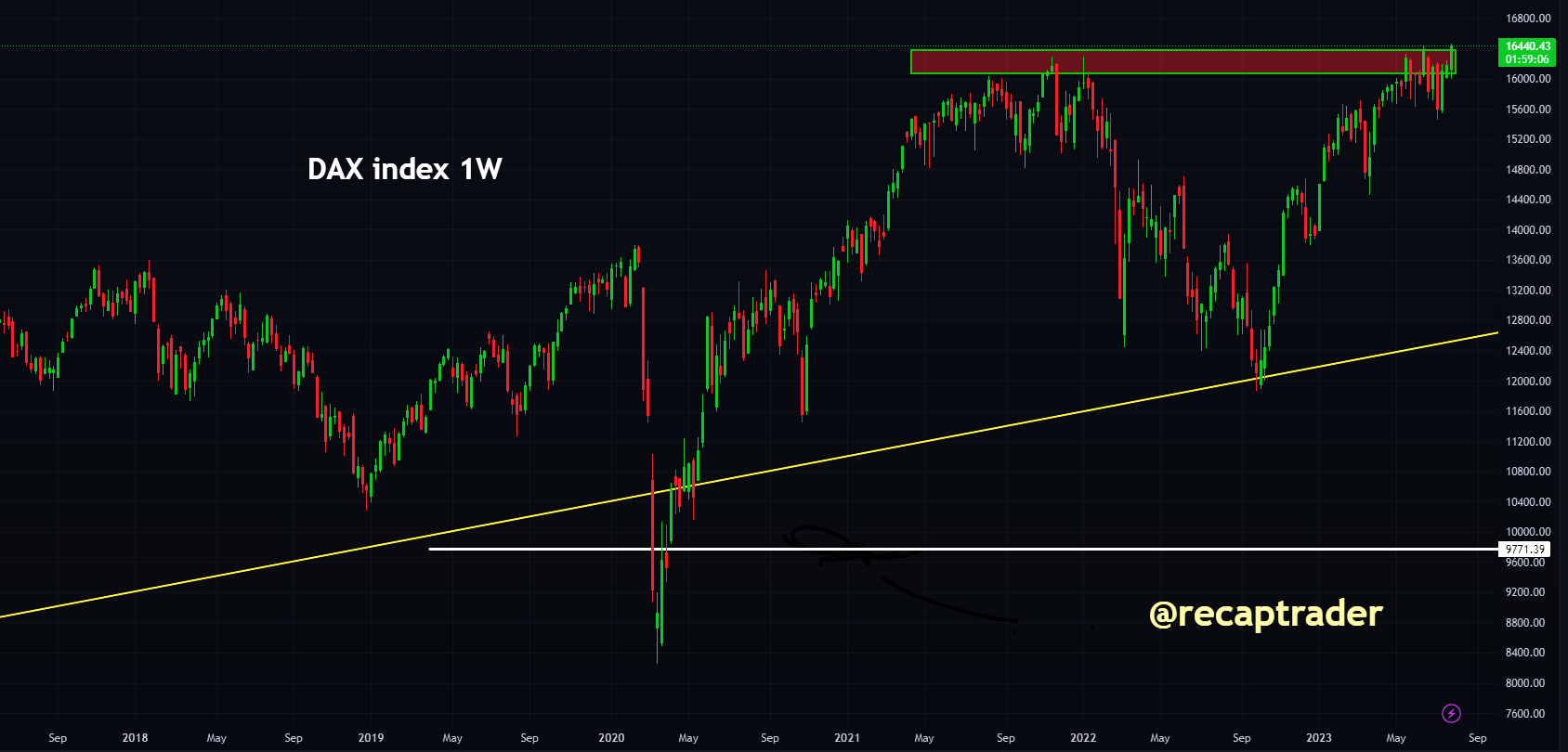 Op basis van prijs gedreven actie blijft de Duitse DAX in een uptrend zitten. De weerstand is deze week voorzichtig doorbroken. Als er geen onvoorziene omstandigheden plaatsvinden kan dit zelfs leiden tot een versnelling van de uptrend op basis van de prijs gedreven actie. Sowieso lijkt de bodem steeds hoger te liggen, het tegenovergestelde van wat het geval was in de eerste helft van 2022.