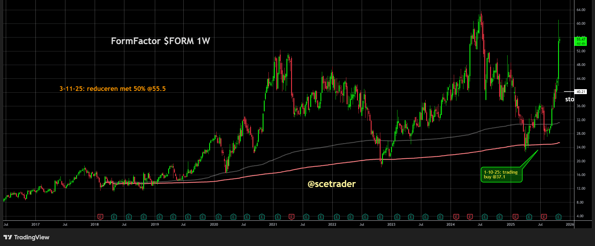FormFactor $FORM heeft sinds onze instap begin oktober een sterke koersstijging laten zien. Het aandeel is uitgegroeid tot één van de opvallende winnaars binnen de halfgeleidersector. Zie ook de database.