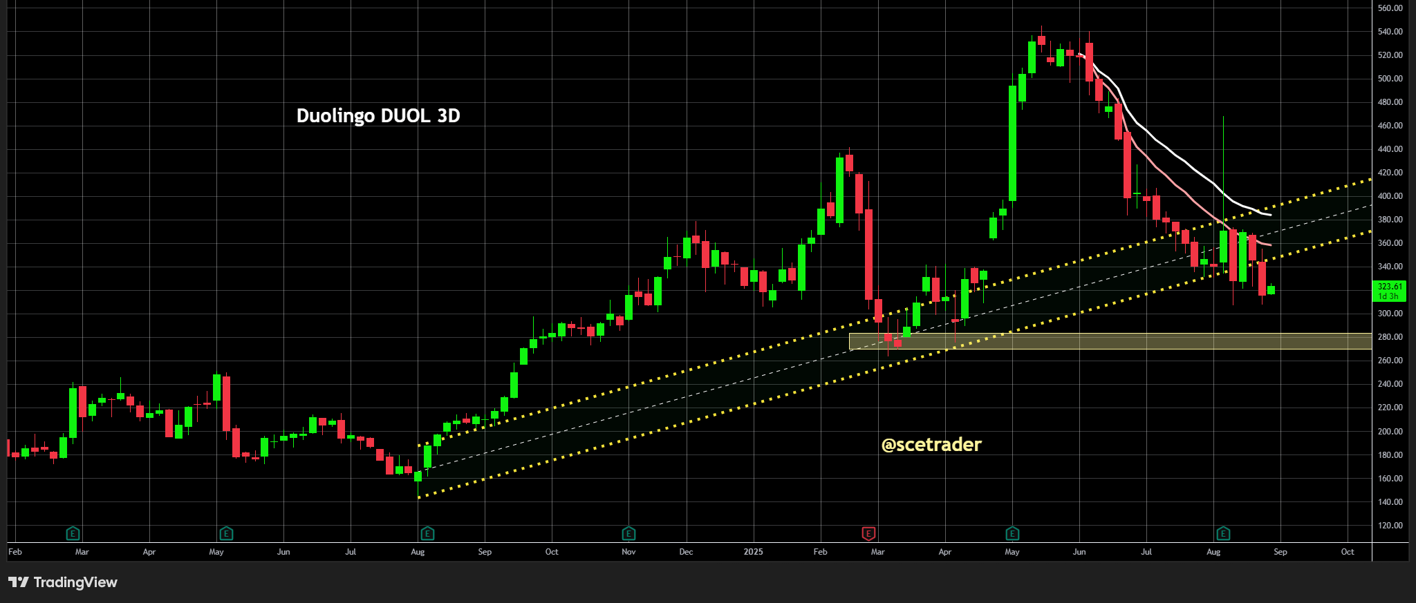 De koers van Duolingo heeft na de publicatie van de kwartaalcijfers een opvallende draai gemaakt. Waar er aanvankelijk een zeer positieve reactie was, zakte het aandeel nog dezelfde dag weer terug. Sindsdien is de daling doorgezet.