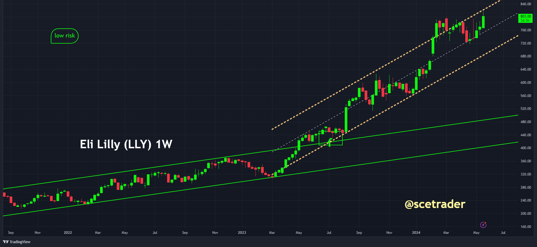 Met een sterke pijplijn, strategische acquisities en investeringen in toekomstige groei, blijft het bedrijf een aantrekkelijke investering. We verwachten dat de aandelen van Eli Lilly blijven stijgen, gezien de recente ontwikkelingen en financiële kracht. Ook al hoeft dan niet in één rechte lijn te zijn.
