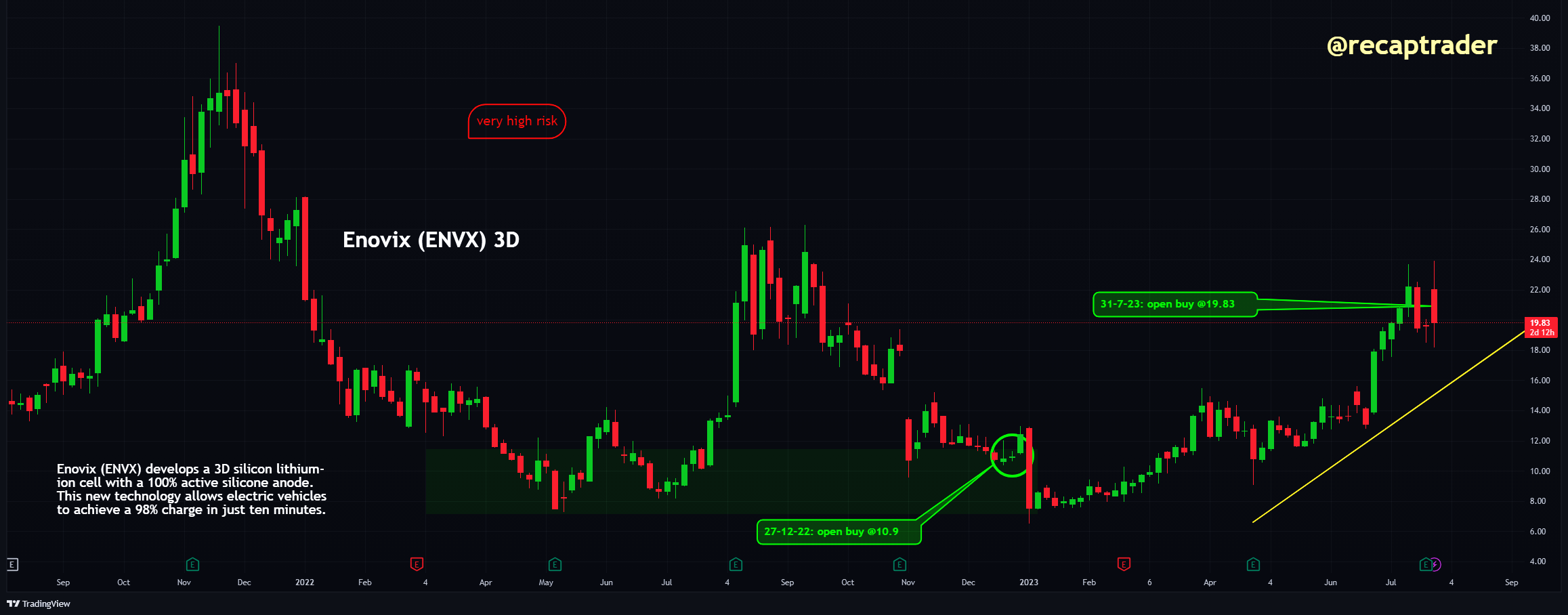 Het aandeel Enovix heeft de laatste tijd weinig aandacht gekregen. We zijn naar een positieve waardering gegaan in december vorig jaar. De koers is al zigzaggend verdubbeld in die tijd.