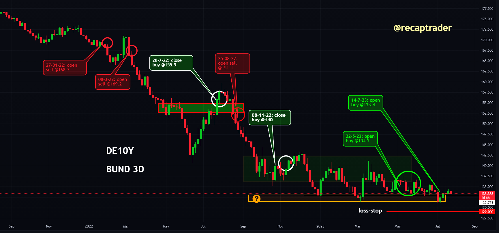 De bund is gedaald na eerdere winsten, maar stuitert boven haar accumulatiezone en er wordt in de toekomst een stijging voorzien.