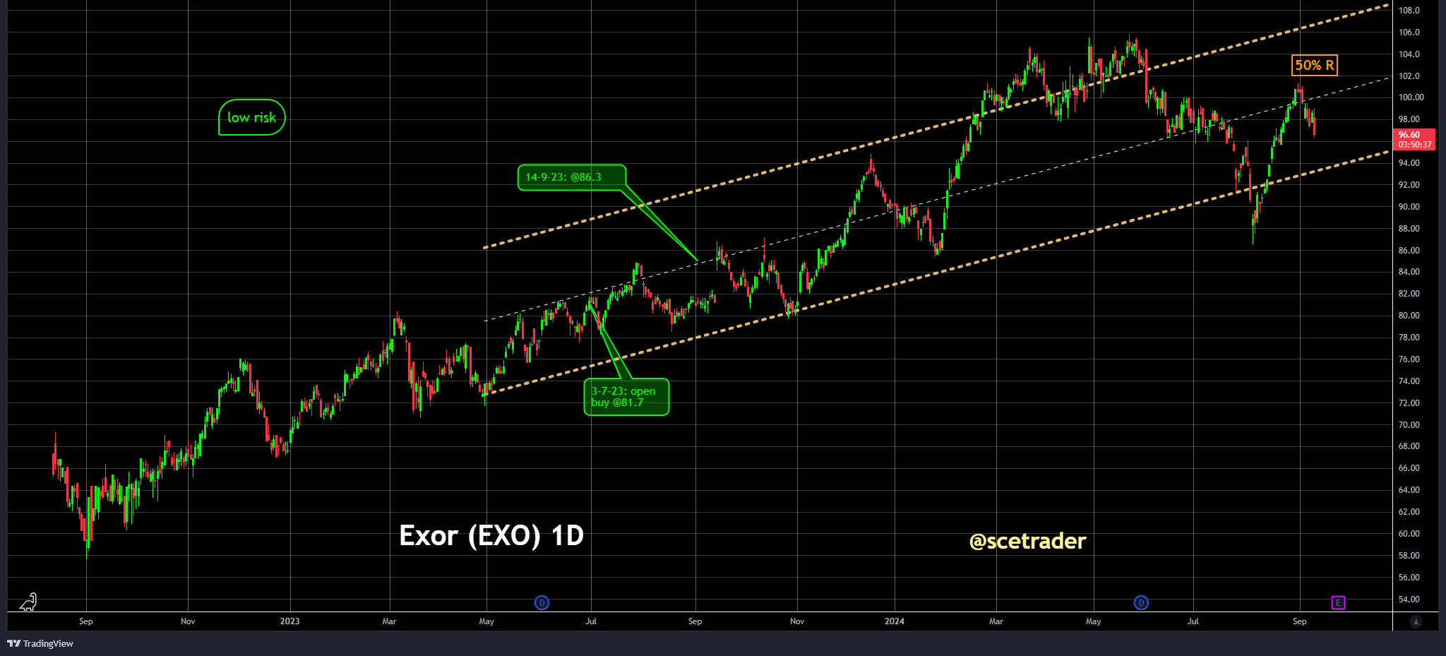 We willen wel blijven zitten, maar wel met een up die 50 procent kleiner is. Deze overgebleven 50% houden we aan, omdat we Exor nog steeds als een mooie langetermijnbelegging zien, maar de signalen uit de auto-industrie worden te negatief. Dat is reden om voorzorgmaatregelen te nemen.