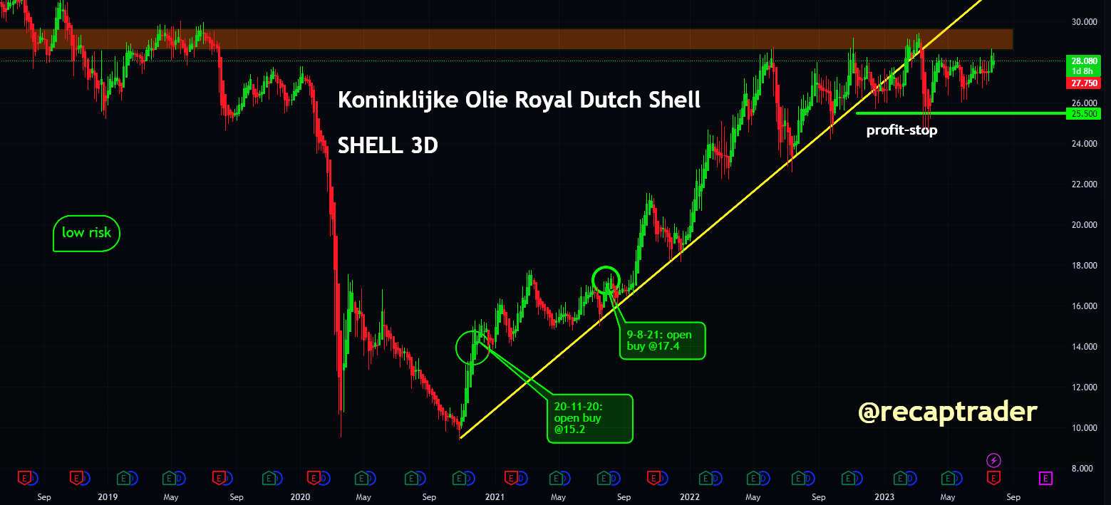 Misschien dat de koers op korte termijn een beetje blijft zweven, maar zodra de markt doorheeft dat de strategie van Shell misschien wel veel slimmer is dan gedacht kan het aandeel naar nieuwe highs gaan.