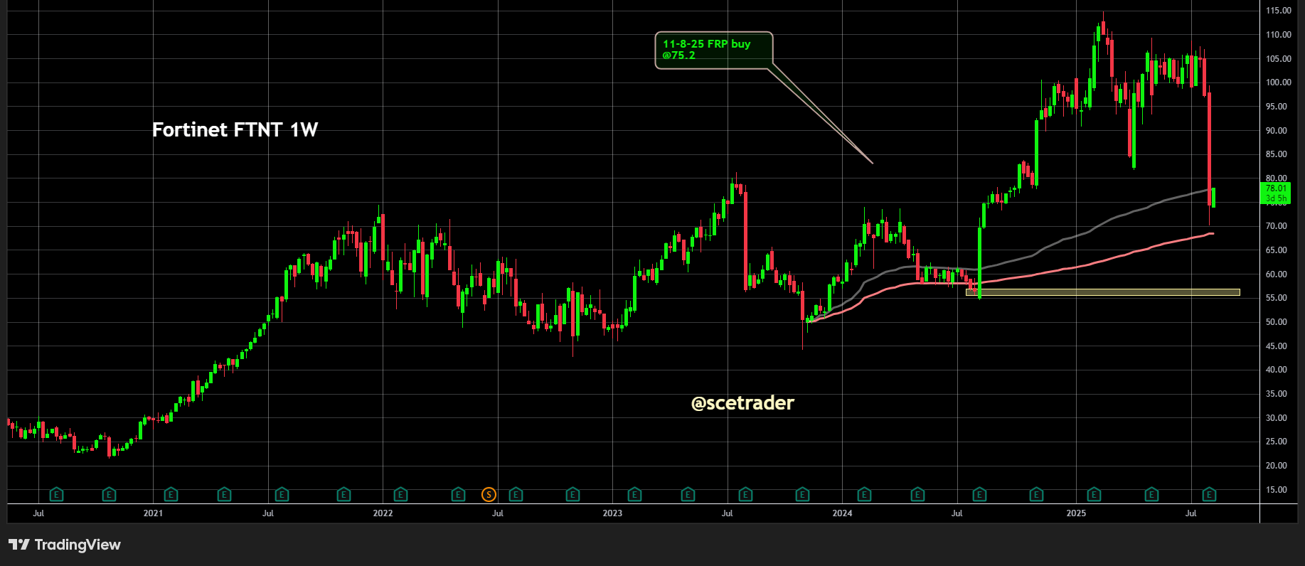 Het aandeel Fortinet staat vandaag 4 procent hoger. Na de cijfers maakte de koers een scherpe dip, waarop wij op maandag 11 augustus hebben gekocht (zie ook dit artikel).