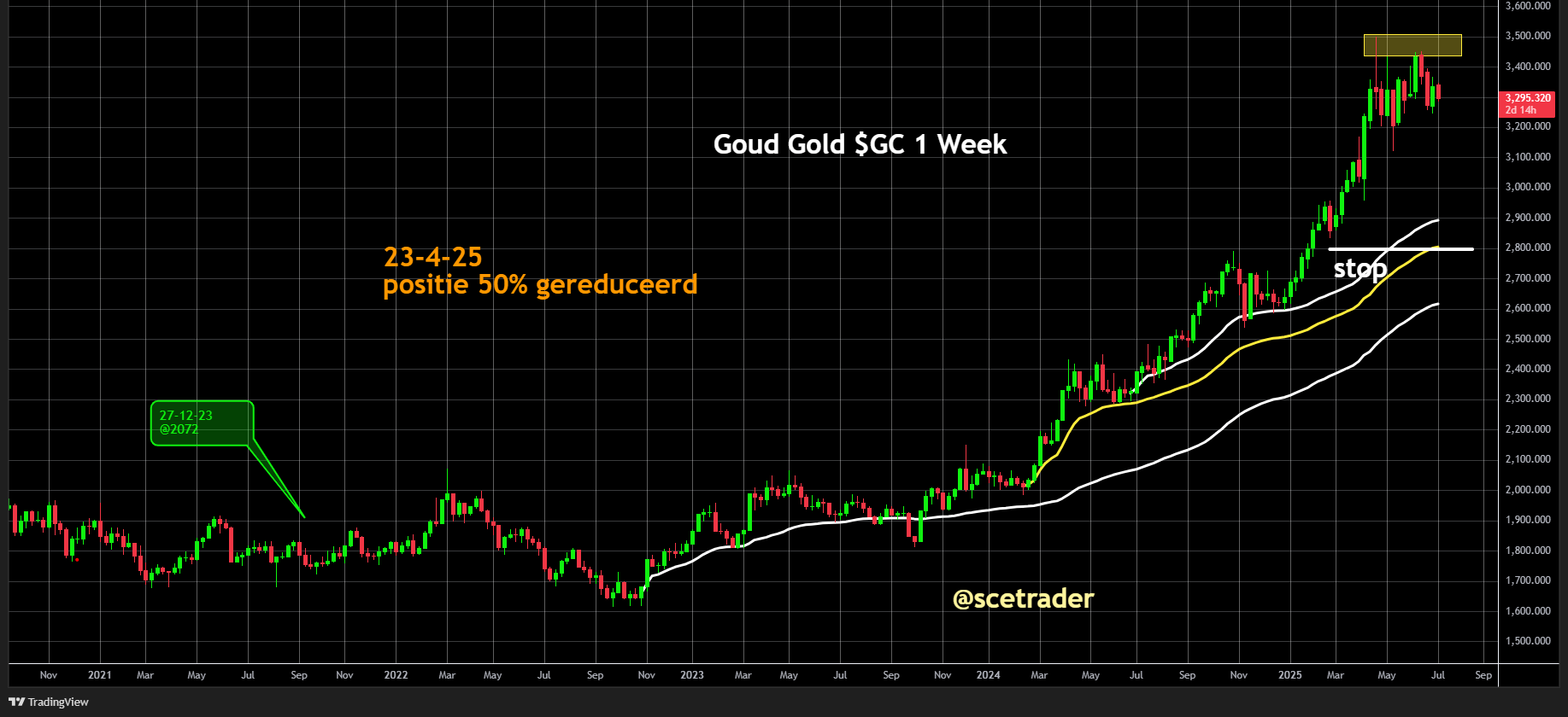 Wij krijgen steeds meer het odee dat het huidige niveau rond $3.300 een fase van consolidatie inluidt, waarin goud tijdelijk terrein moet prijsgeven.