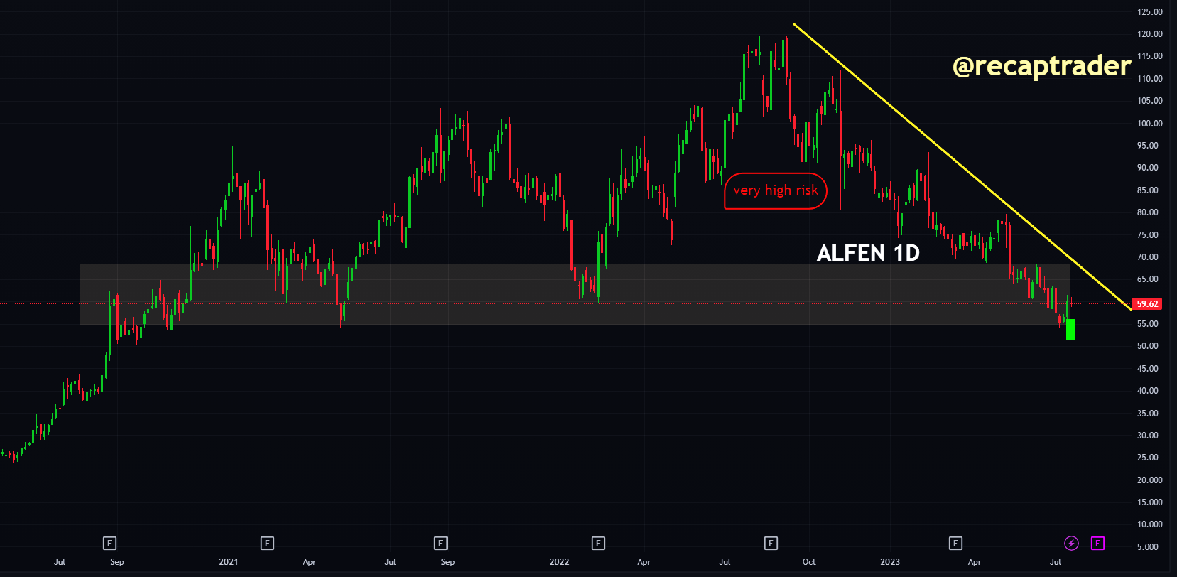 Alfen (ALFEN) ligt er nog steeds zwak voor. Toch is de kans toegenomen dat er wordt gespeculeerd over grote orders voor Alfen binnenkomen vanuit de EU. Hierdoor zou de koers mogelijk tijdelijk kunnen stijgen. Zoals eerder aangegeven, hebben we momenteel weinig vertrouwen in de lange termijn van Alfen. Eerst moet het management beter gaan communiceren en we denken dat er op enig extra kapitaal wordt opgehaald door het bedrijf.
