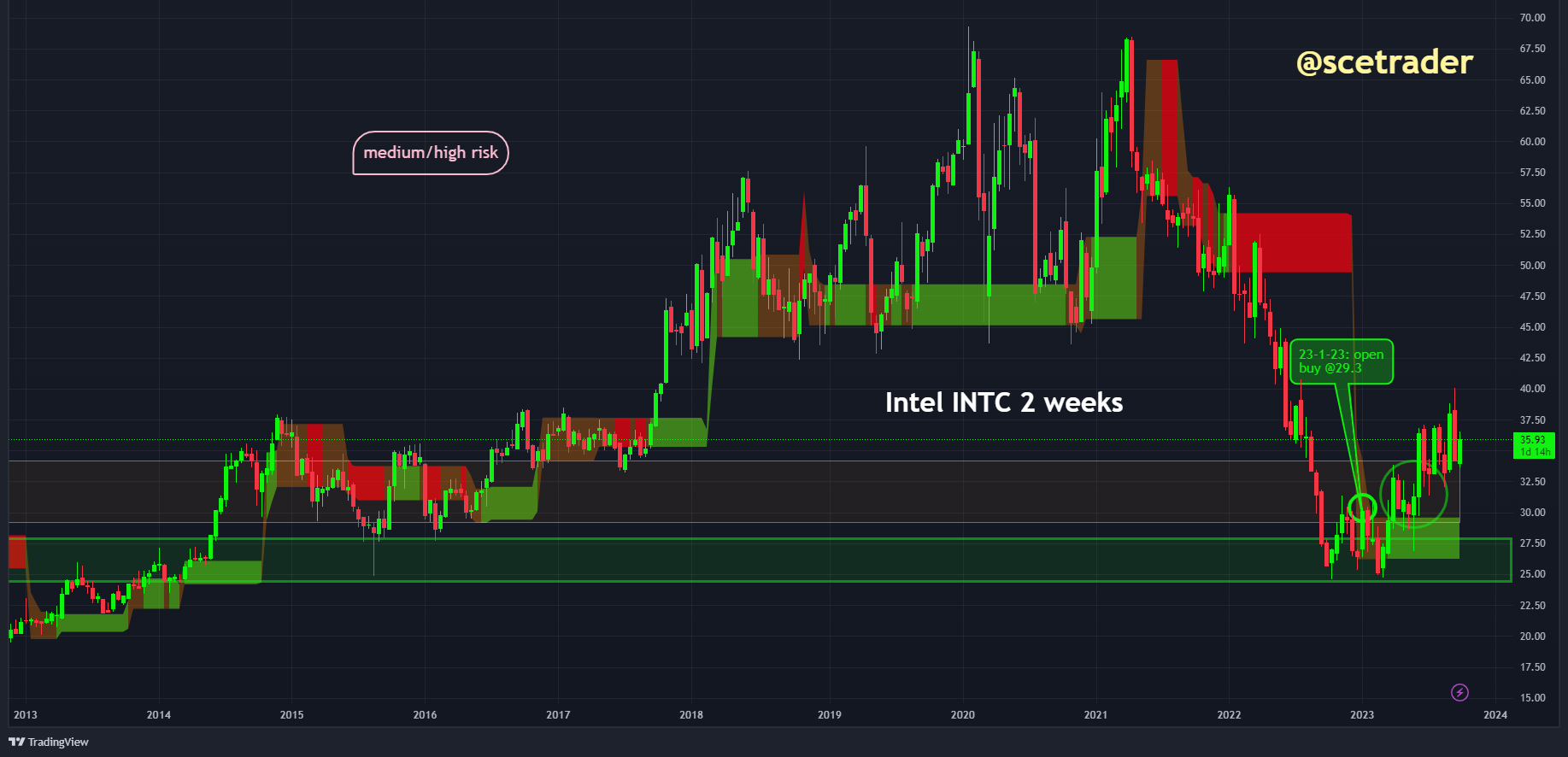Zodra de marktomstandigheden verbeteren zien we Intel als een aantrekkelijke kandidaat om te verzwaren. We zijn weer op een up in Intel gegaan in januari van dit jaar.