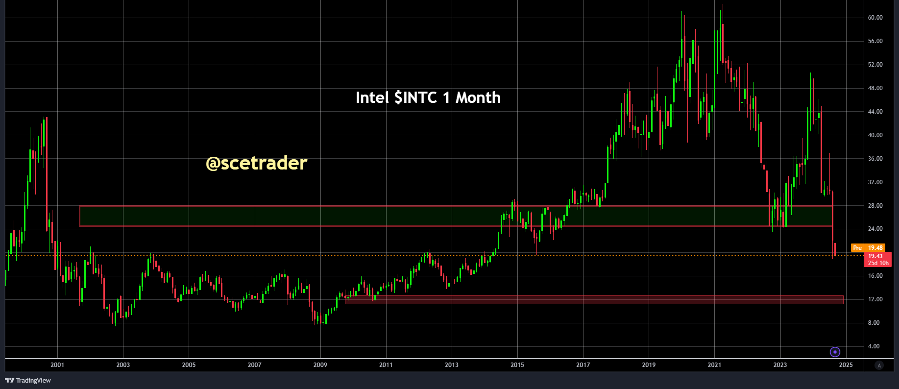 Voorlopig nemen we geen actie met betrekking tot het aandeel Intel en is er reden tot grote zorgen. In het ergste geval zien we de koers nog veel verder dalen naar 8 tot 12 dollar.