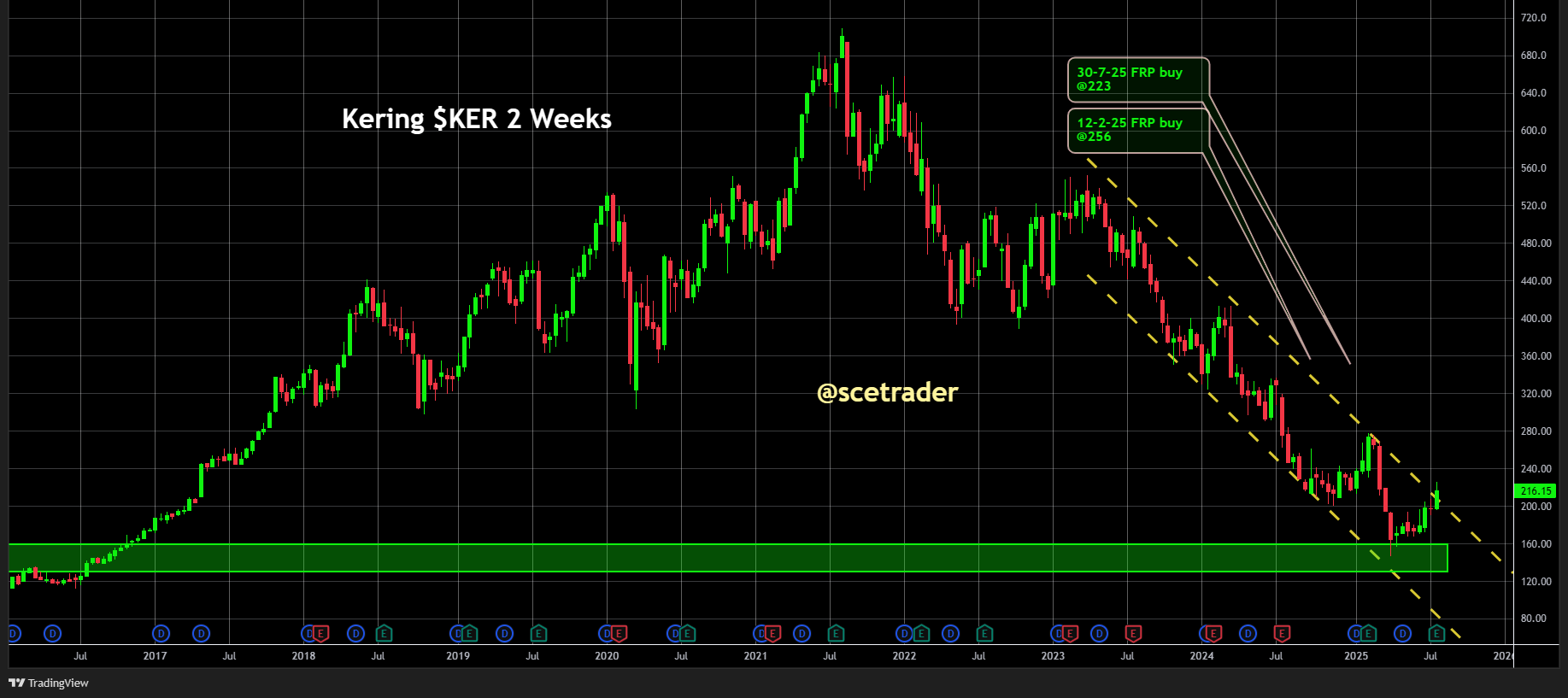 We zitten op een stijging van het aandeel Kering, en juist dit soort ontwikkelingen ondersteunt het scenario waarin het aandeel de komende twee jaar mogelijk een herstelbeweging richting hogere niveaus kan maken (zie ook de database).