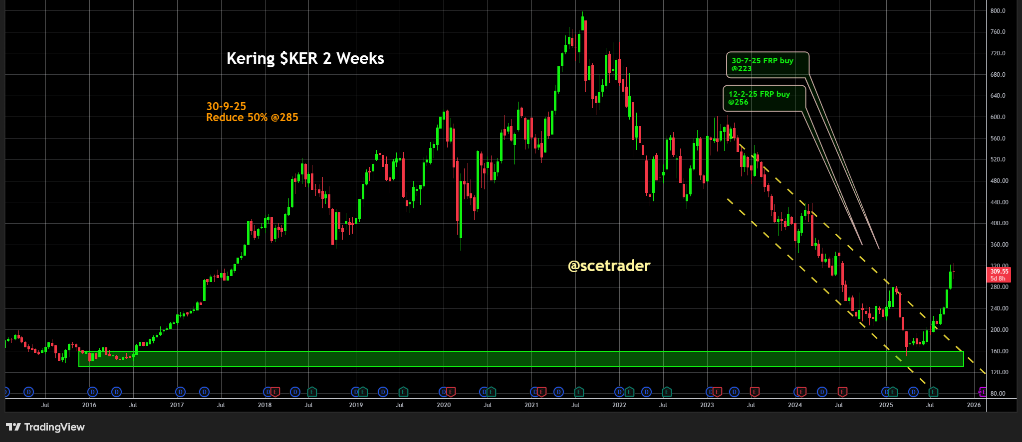We remain bullish on Kering. We recently halved our position and are letting the remaining shares run as a free ride. This keeps us fully positioned for further upside, while profits from the closed portion generated fresh cash for new opportunities. The planned sale of the beauty unit to L’Oréal confirms that Kering is making the right strategic moves — freeing up capital, strengthening its balance sheet, and sharpening brand focus.
