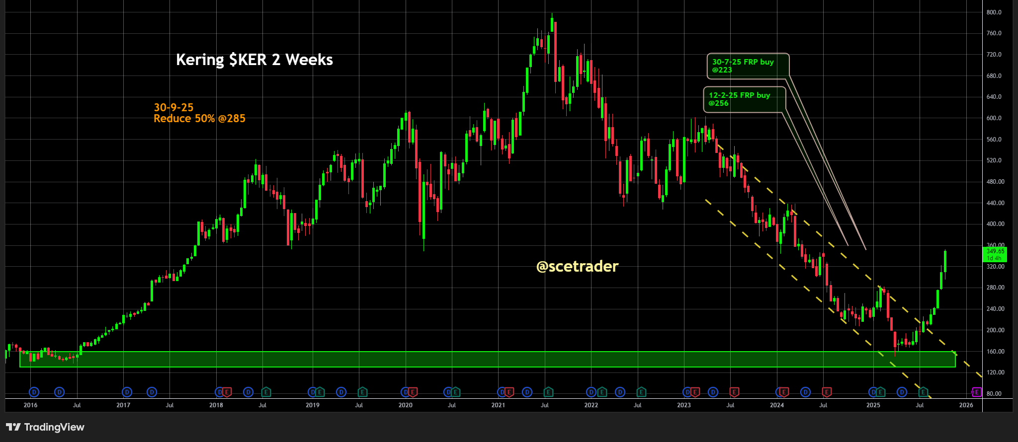 Kering shares are trading about 10% higher today, which works in our favor since we built our position earlier in two stages. On September 30, we halved the position out of pure discipline, but we remain clearly constructive on the stock.