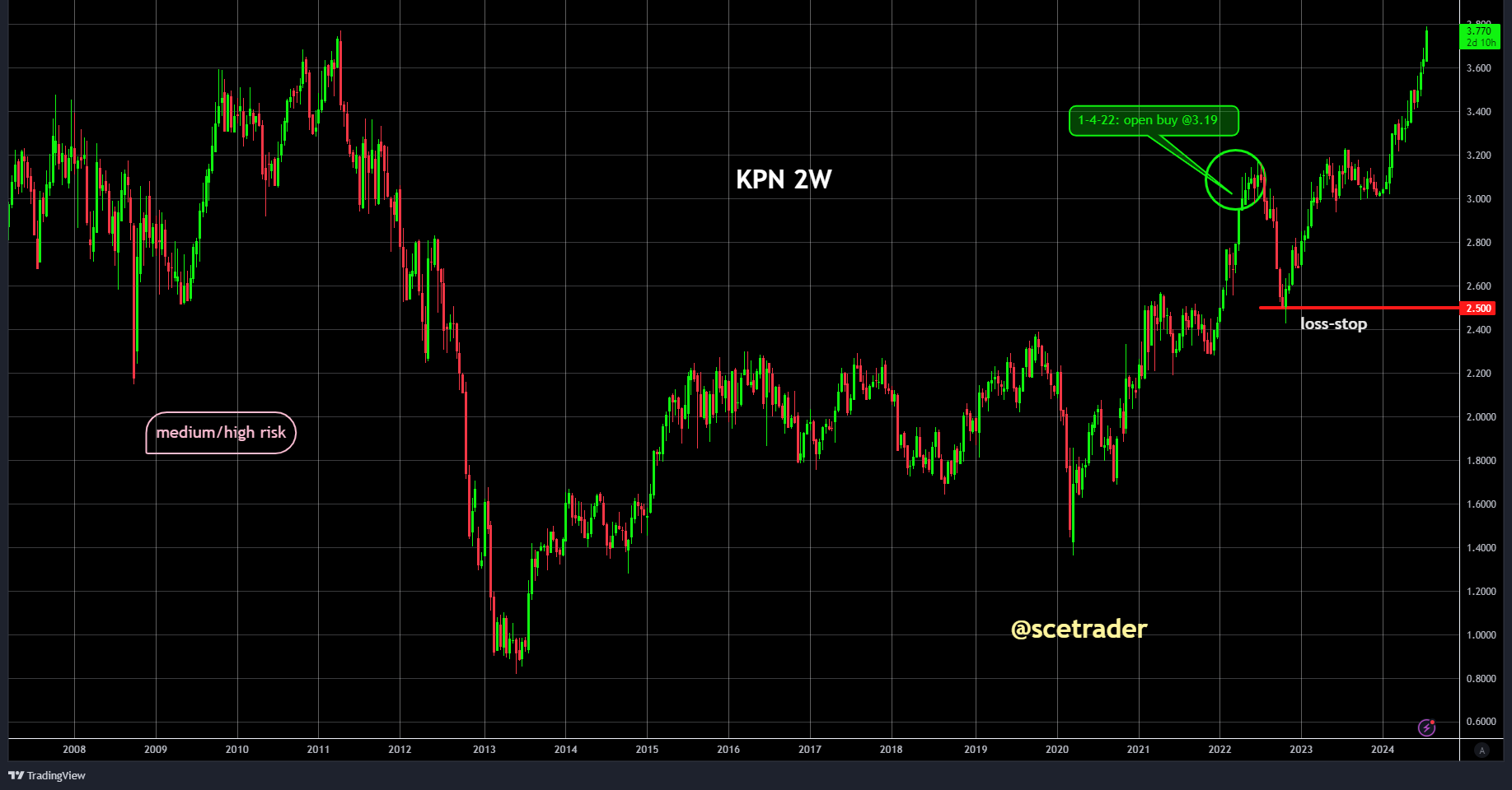 We houden momenteel vast aan de up vanaf 3,19 euro, mede door het verwachte dividend en de kans op verdere consolidatie in de sector. Ondanks de uitdagingen in de breedbandmarkt en de daling in de wholesale-sector, toont KPN veerkracht met solide prestaties in de consumenten- en zakelijke markten. De verwachting is dat de aandelenkoers positief zal reageren op de consistente resultaten en de toekomstgerichte strategie van het bedrijf.
