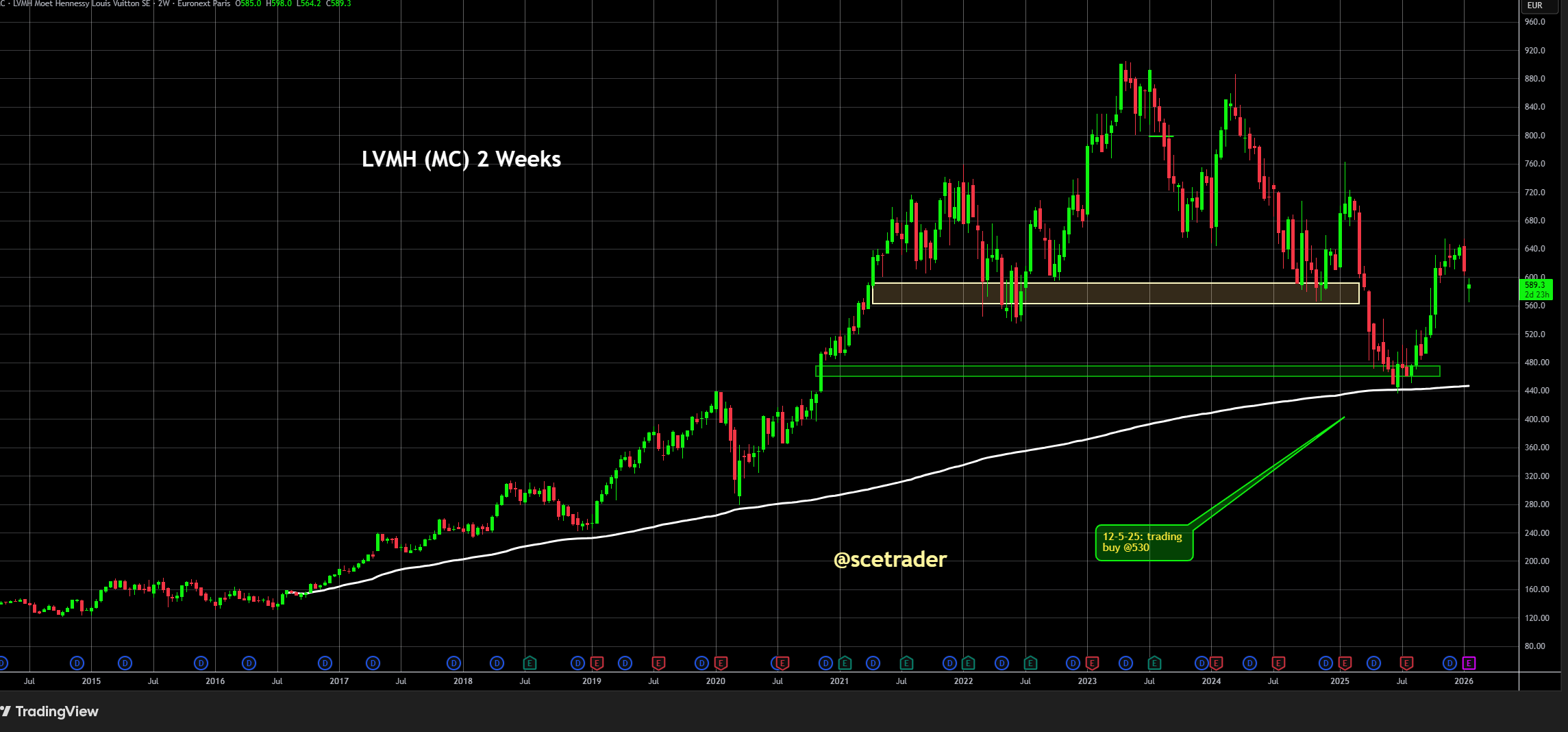 Wij zitten op een stijging van het aandeel LVMH en beschouwen het aandeel als een structurele kernpositie binnen een institutionele portefeuille. Bij significante correcties zijn wij bereid om de positie verder uit te bouwen. De investment case rust niet op een korte termijn herstel, maar op de uitzonderlijke structurele winstkracht van het concern.