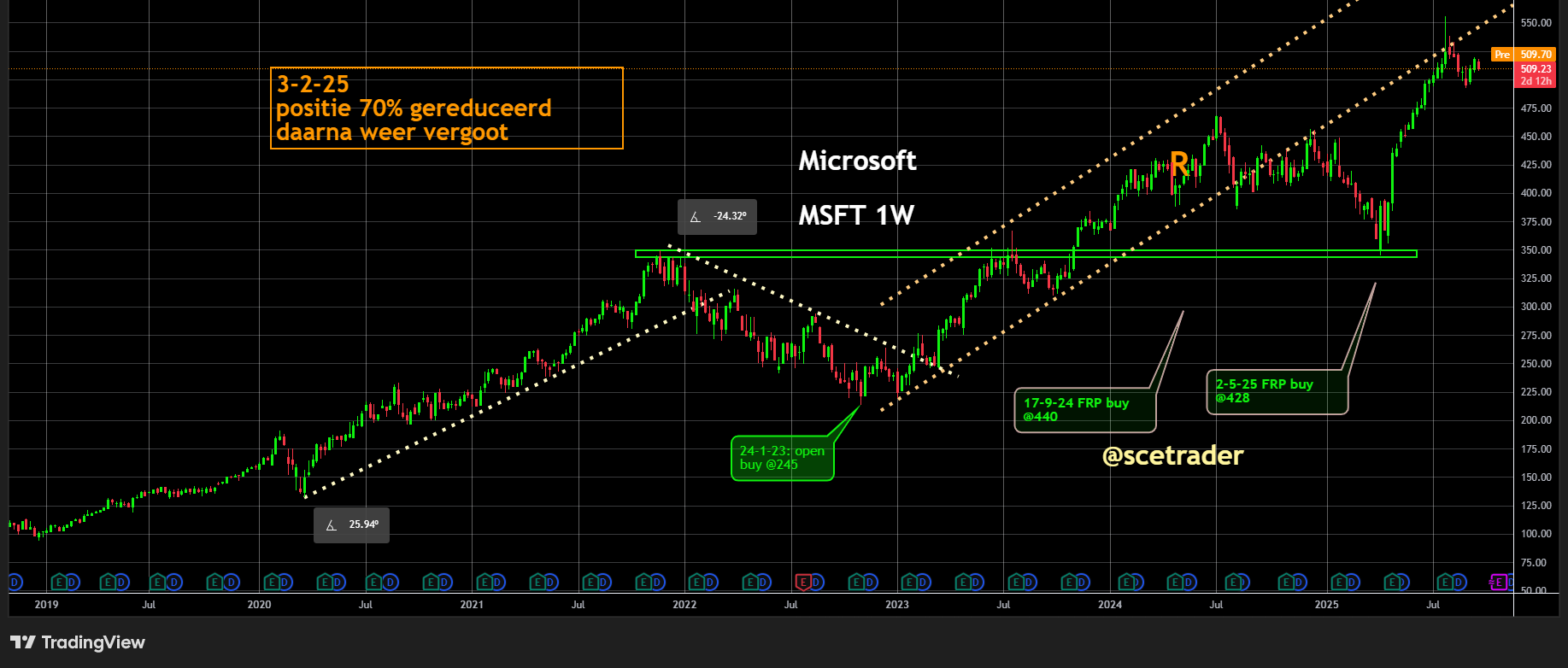 Tegelijkertijd letten we goed op of de rally niet gaat haperen. Als dat zo blijft, kan een verkleining van de positie volgen. Op lange termijn willen wij Microsoft in portefeuille houden. Zie ook de database.