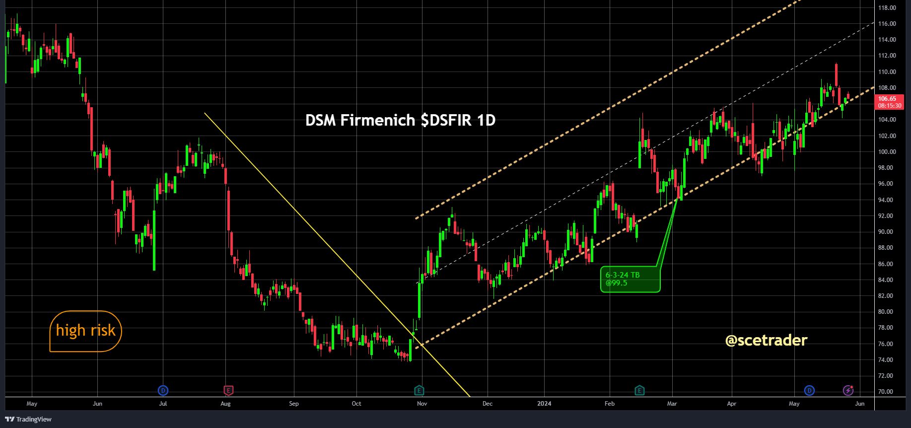 Op de Duitse beurs zien we onder andere het aandeel Symrise 2,2% hoger liggen. De stijging van het aandeel Symrise kan indirect een indicatie zijn voor het aandeel DSM-Firmenich m$DSFIR, aangezien beide bedrijven in aanverwante sectoren opereren. Over DSM Firmenich gesproken, we zijn onlangs begonnen dit aandeel te kopen en profiteren nu van een stijging.