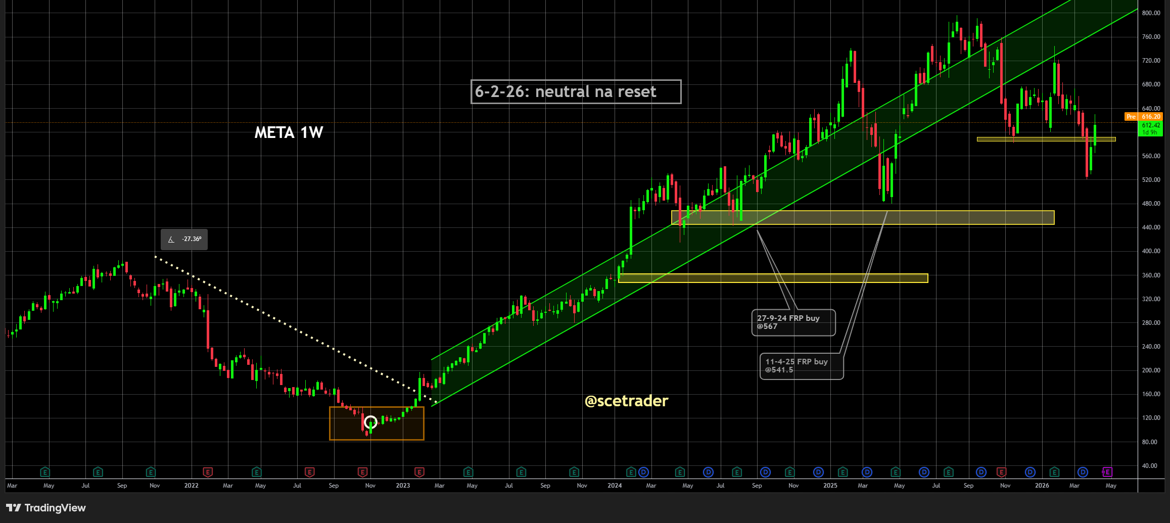 Wij blijven op lange termijn positief over Meta en zien aanzienlijk hogere koersen, maar op korte termijn wachten we op bevestiging dat deze ontwikkeling daadwerkelijk doorzet voordat we opnieuw positie overwegen.