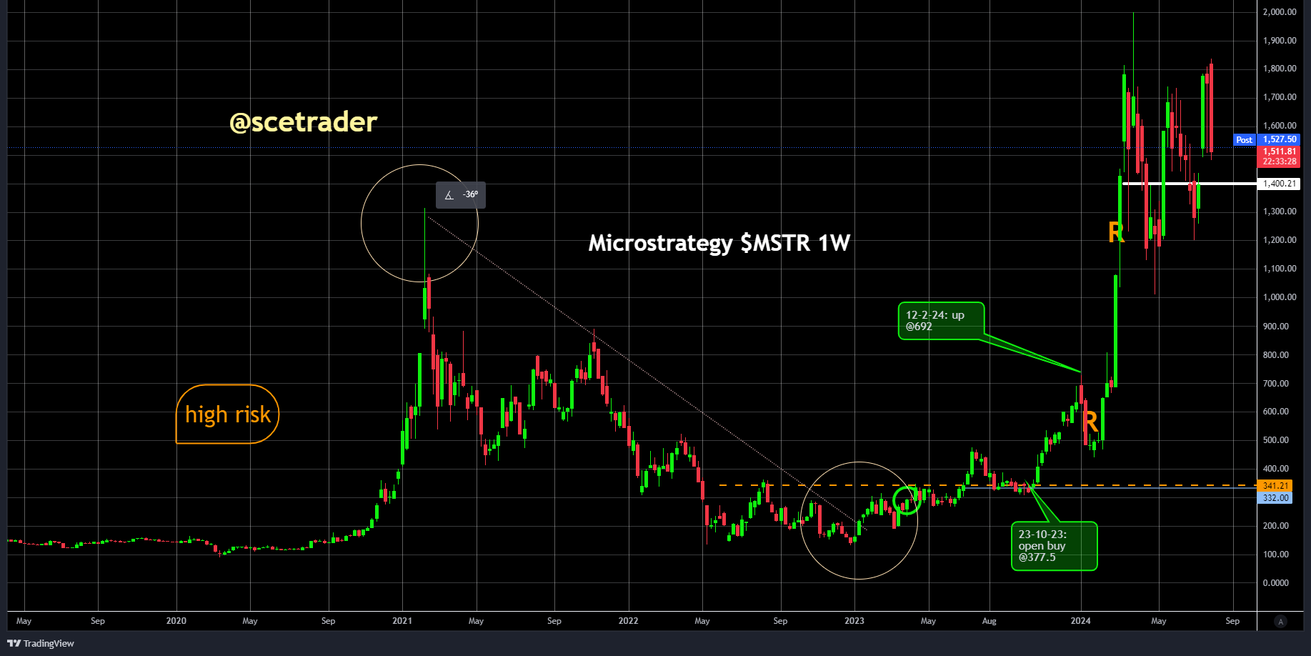 Eerder hebben we aandelen van MicroStrategy gekocht en met een sterke winst weer verkocht. Nu is het aandeel echter relatief duur in verhouding tot de huidige bezittingen in Bitcoin.