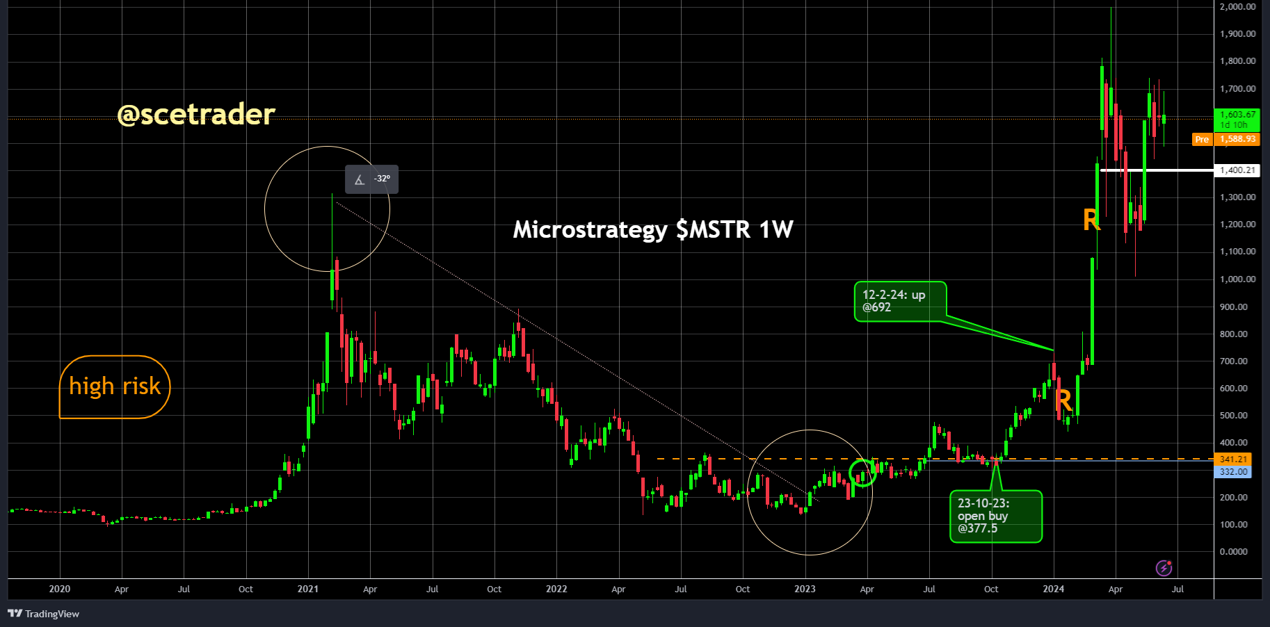 Het bedrijf is steeds meer afhankelijk van Bitcoin. Desondanks verwachten we dat als Bitcoin wel naar boven uitbreekt, dit het sentiment rond MicroStrategy tijdelijk positief zal beïnvloeden en tot nieuwe highs kan leiden. Voor nu doen we niets met MicroStrategy.