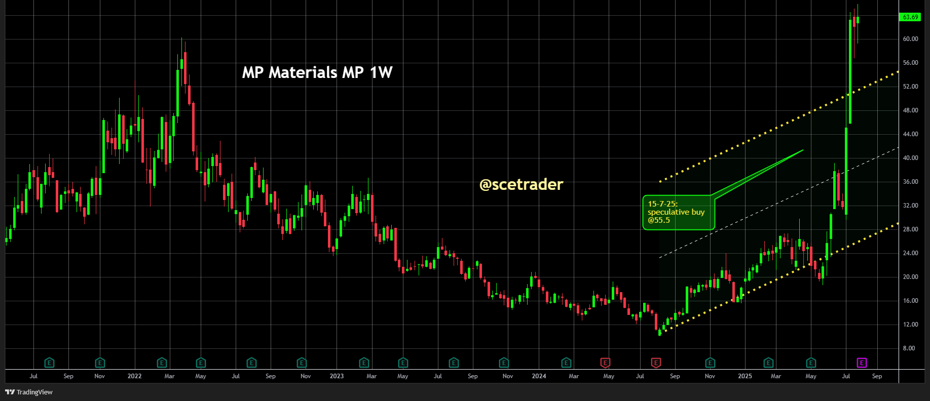 We hebben eerder positie genomen in het aandeel $MP Materials en blijven zitten op een stijging (zie ook de database).