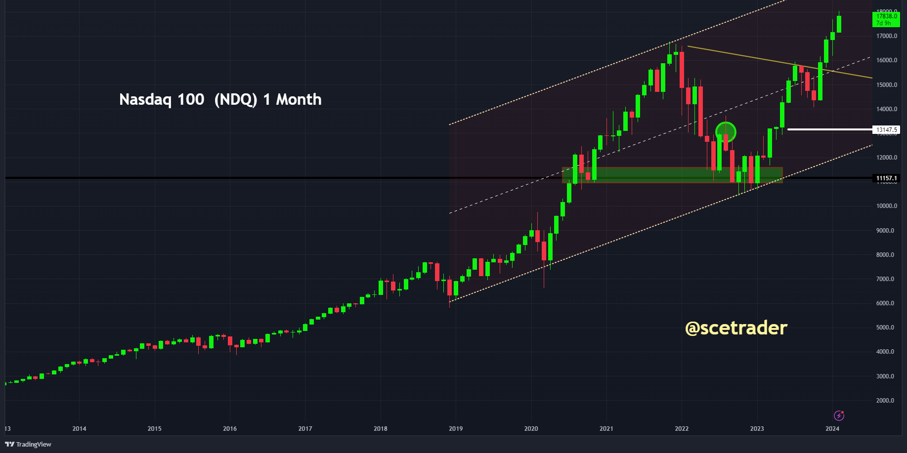 Mocht de Nasdaq corrigeren, dan zou dat eventueel kunnen zijn naar een niveau rond de 16.000, en bij een grotere correctie richting de 13.200. Voor nu zien we dat opwaarts wordt gekeken.