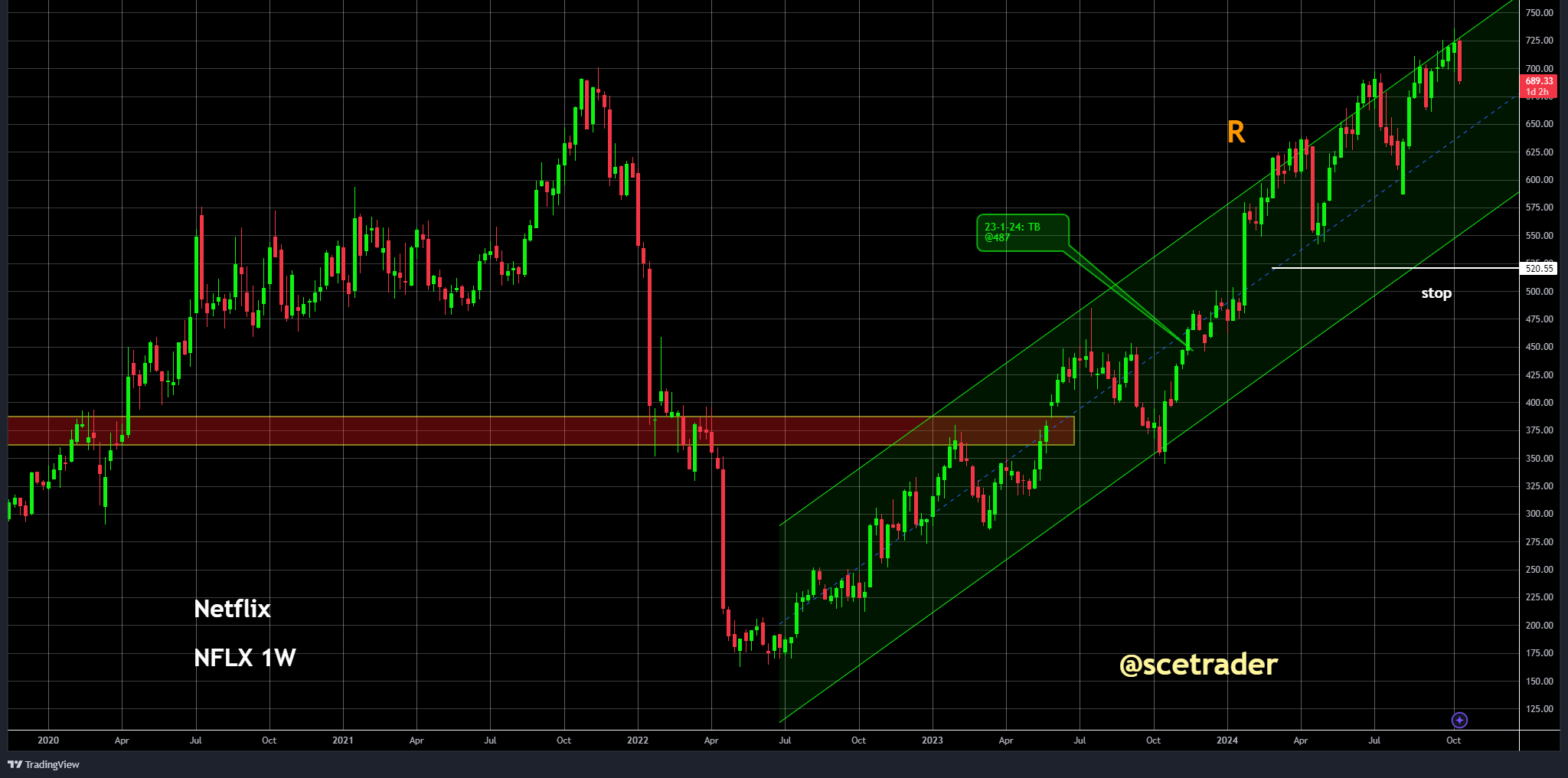 Onze visie op het aandeel Netflix blijft positief, vooral gezien de cijfers en de algehele prestaties van het bedrijf. We zitten op een stijging van het aandeel.
