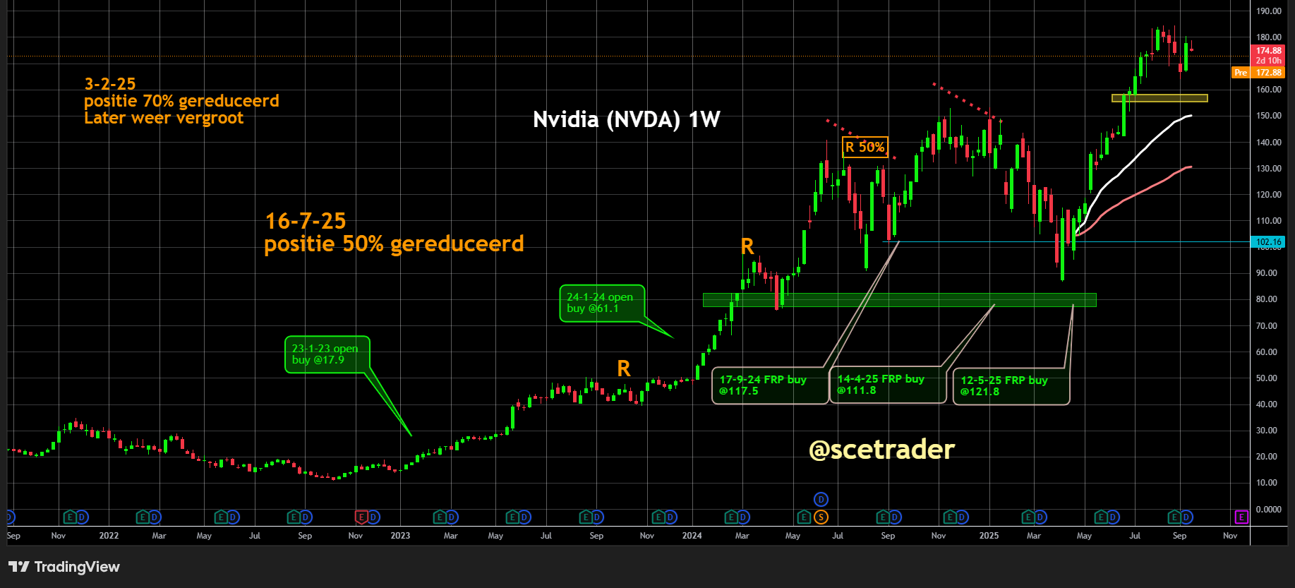 Wij zitten op een stijging van het aandeel, maar kopen niet verder bij. We zien wel waar het aandeel naartoe gaat, maar verwachten dat de stijging minder stijl zal verlopen in de toekomst.