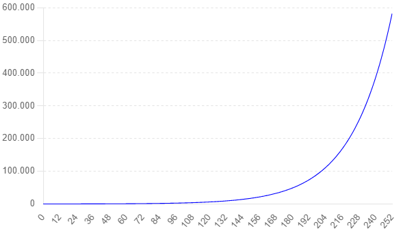 Herhaling: NVIDIA: waar staat de koers als deze 12 maanden elke dag met 3,5% stijgt