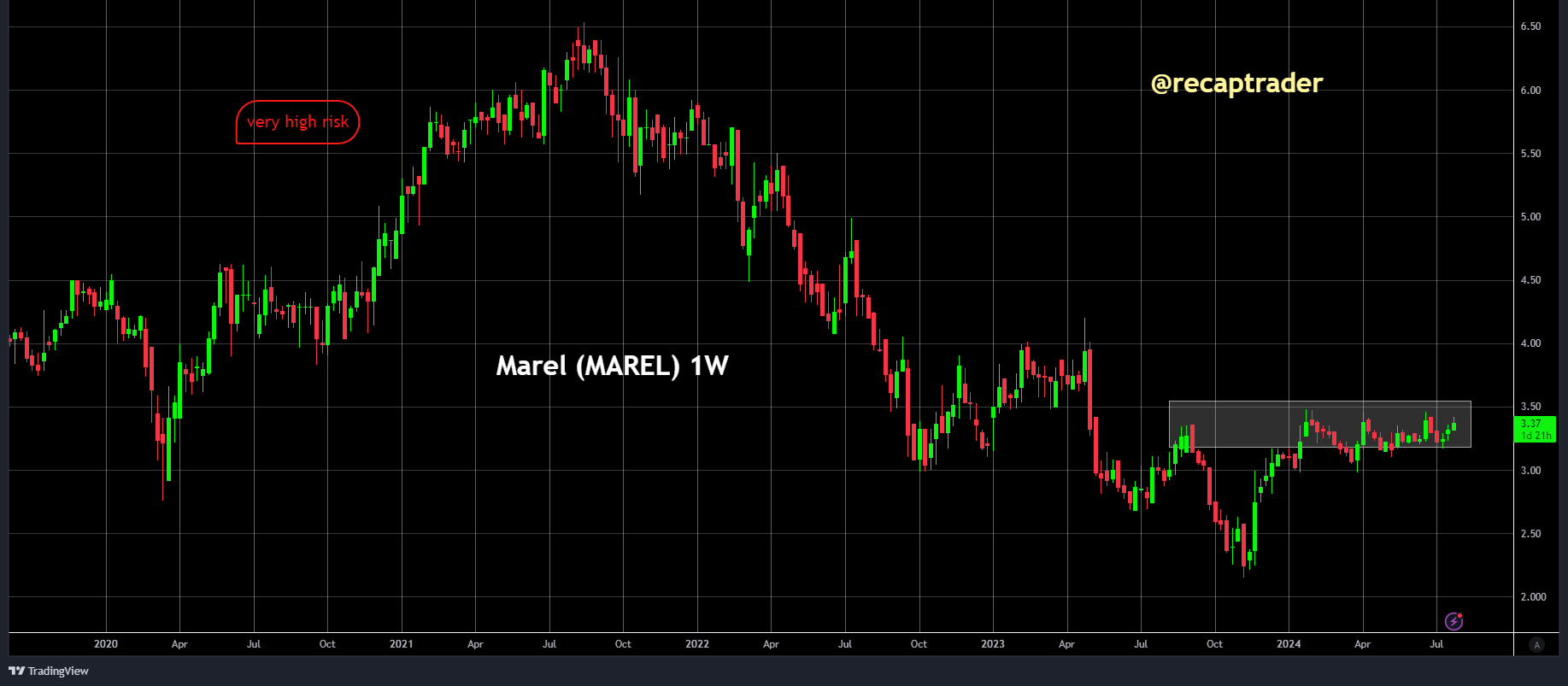 Hoewel de chart suggereert dat de lange trend opwaarts is, is er ook een aanzienlijke kans op een verdere daling op de korte termijn, mede door de bovengenoemde risico's en door prijs actie van het aandeel.