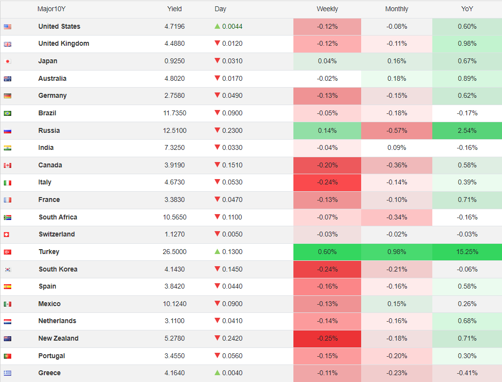 Mocht dat zo zijn, dan kan dit zelfs positief worden uitgelegd. Immers, de markt is de laatste weken bezorgd geweest dat de yields op het tienjarige papier zouden stijgen tot ruim boven dit 5% niveau.