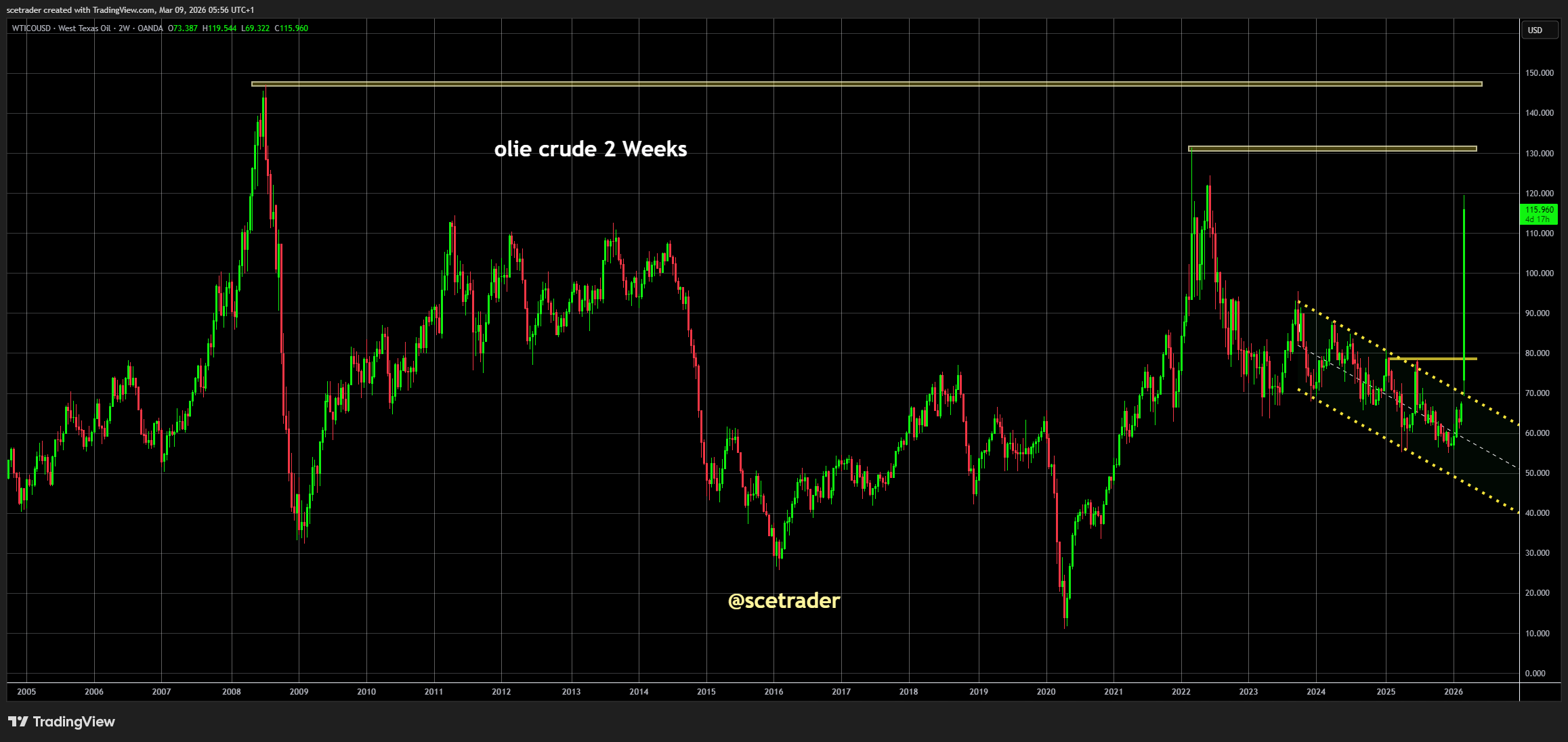 WTO stijgt richting 116 dollar per vat, +26%, wat neerkomt op één van de grootste dagelijkse stijgingen ooit. De markt prijst steeds nadrukkelijker het risico in dat productie, export of transport van olie uit de Golfregio langer kan worden geraakt.