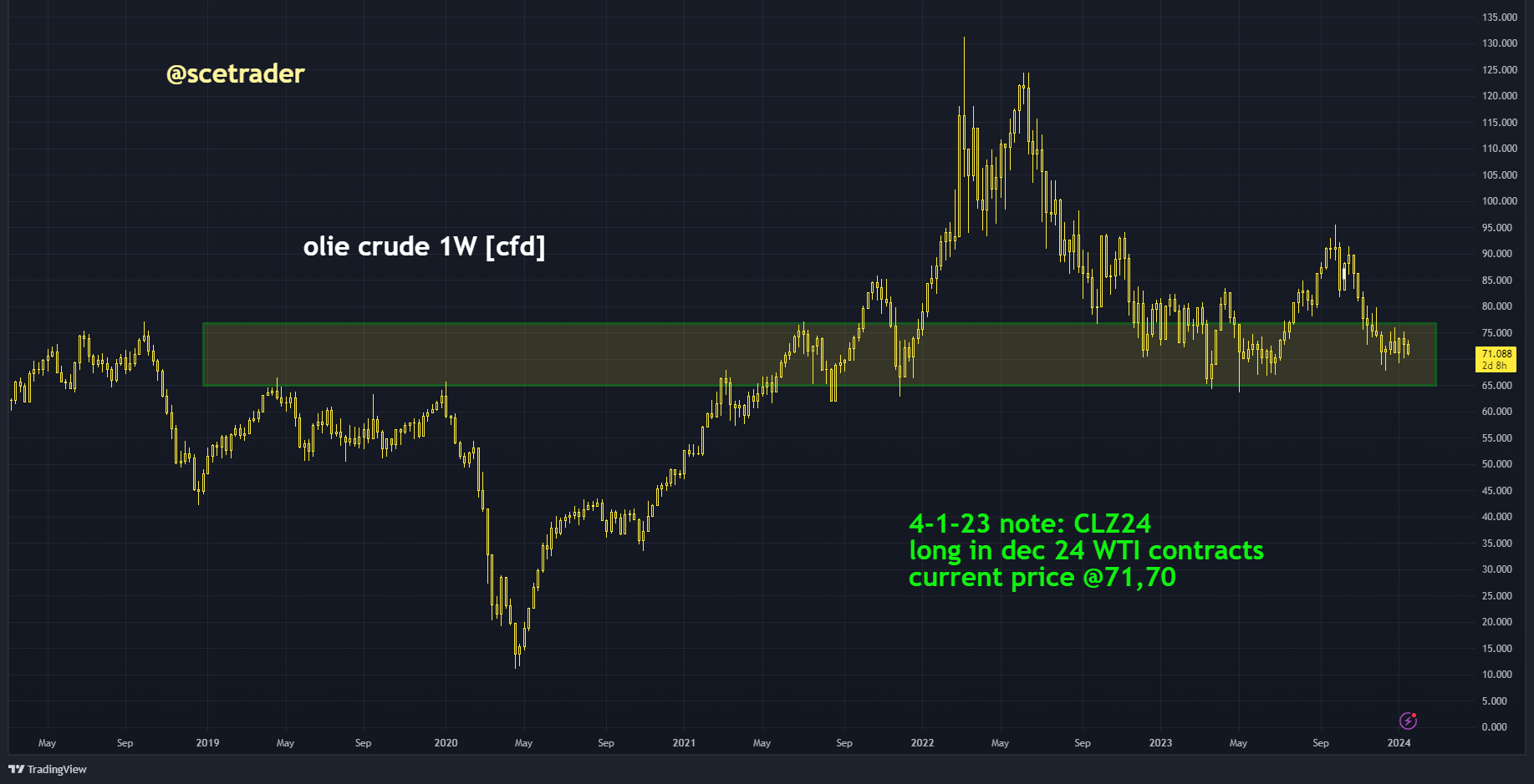 Wij zitten rond het huidige niveau up op in contracten op WTI voor december. Deze gok houden we vast. Het is ook een verzekering geworden tegen eventuele grotere militaire escalaties in het Midden-Oosten.