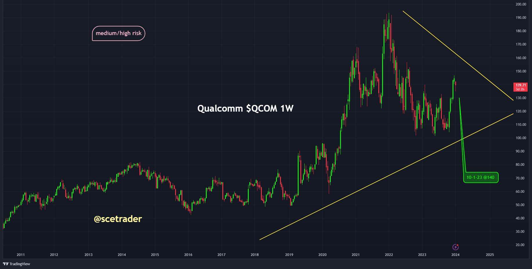 Het is reden, hoewel we liever een mooier prijs-gedreven patroon hadden gezien om van een neutrale houding over te gaan naar een stijging. We willen benadrukken dat we ook rekening houden met eventueel nog wat meer winstnemingen op de gehele markt. Dan zou Qualcomm wellicht meezakken, maar dat gaan we dan gebruiken om te verzwaren.