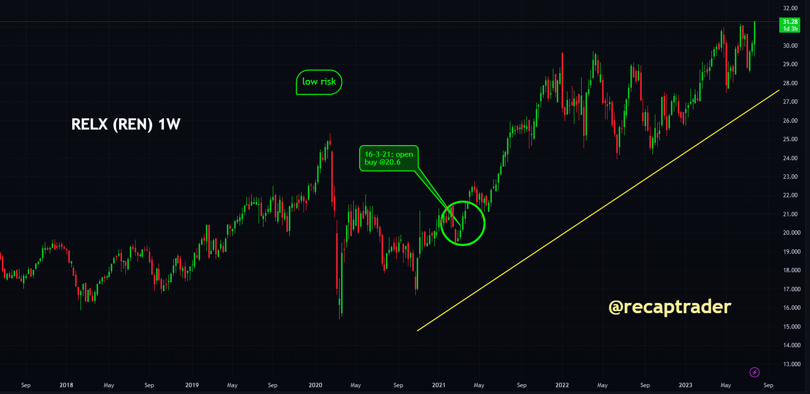 Het aandeel RELX $REN laat op de cijfers over het eerste halfjaar een forse stijging zien. Daarmee wordt op prijs gedreven actie een uitbraakpoging gewaagd door RELX, hoewel de volumes wel achterblijven.