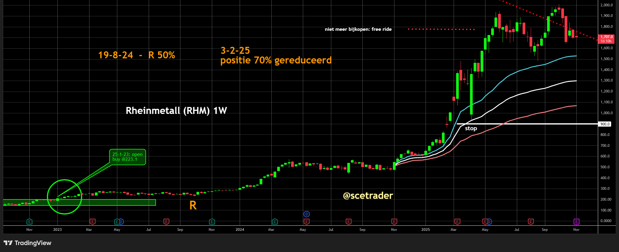 De markt lijkt volledig te erkennen wat Rheinmetall presteert, waardoor het opwaarts potentieel beperkt blijft. Wij kopen niet bij, maar houden onze positie aan. Alleen bij een forse correctie zouden wij overwegen om opnieuw uit te breiden.