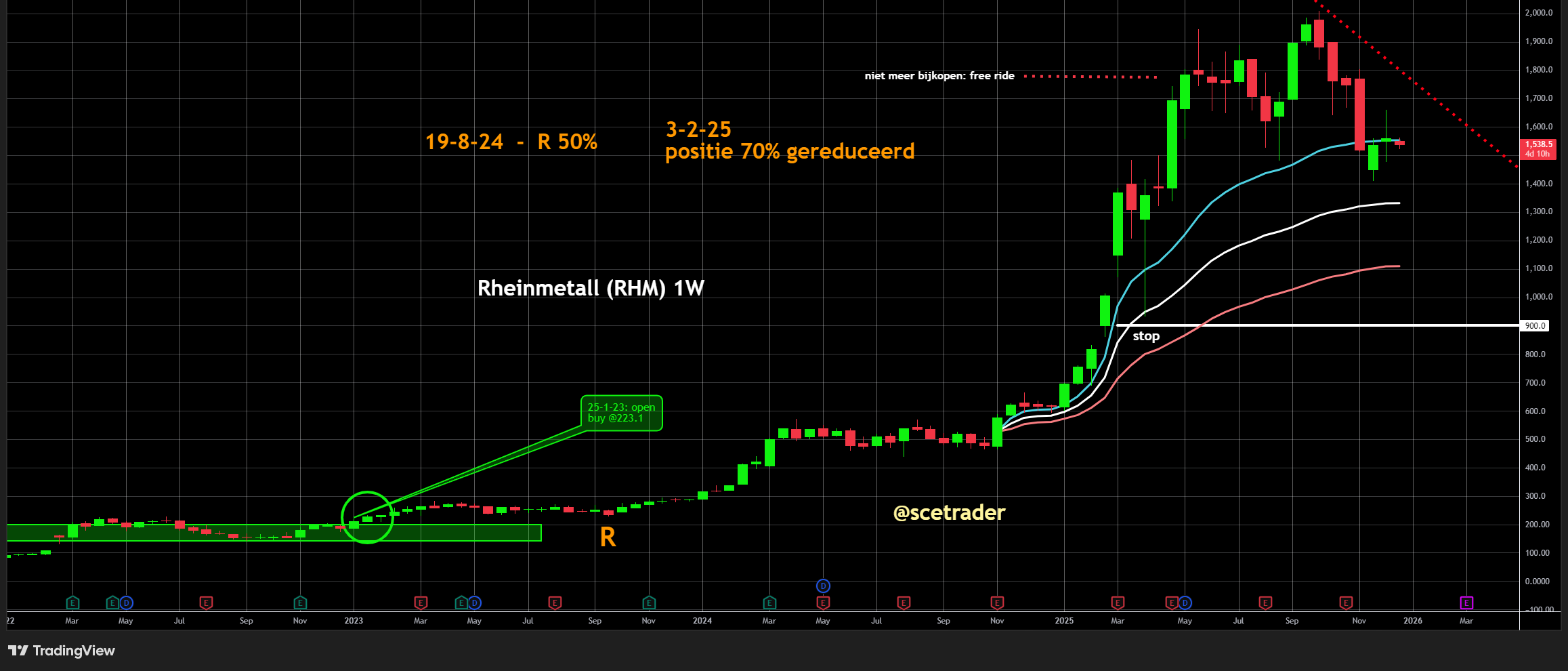 Wij zitten al langere tijd op een stijging van Rheinmetall, met een gemiddelde instap rond circa 223 euro. Al geruime tijd geven wij aan dat wij op dit niveau niet bijkopen en rekening houden met een periode van consolidatie of correctie. Die fase is nog steeds gaande. Dit type nieuws kan ertoe bijdragen dat beleggers tijdelijk minder enthousiast worden over het aandeel.