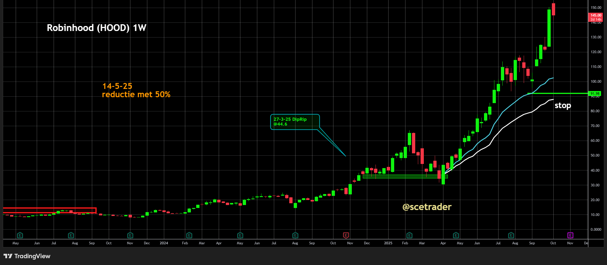 - Wij zitten long in Robinhood en blijven op een stijging.