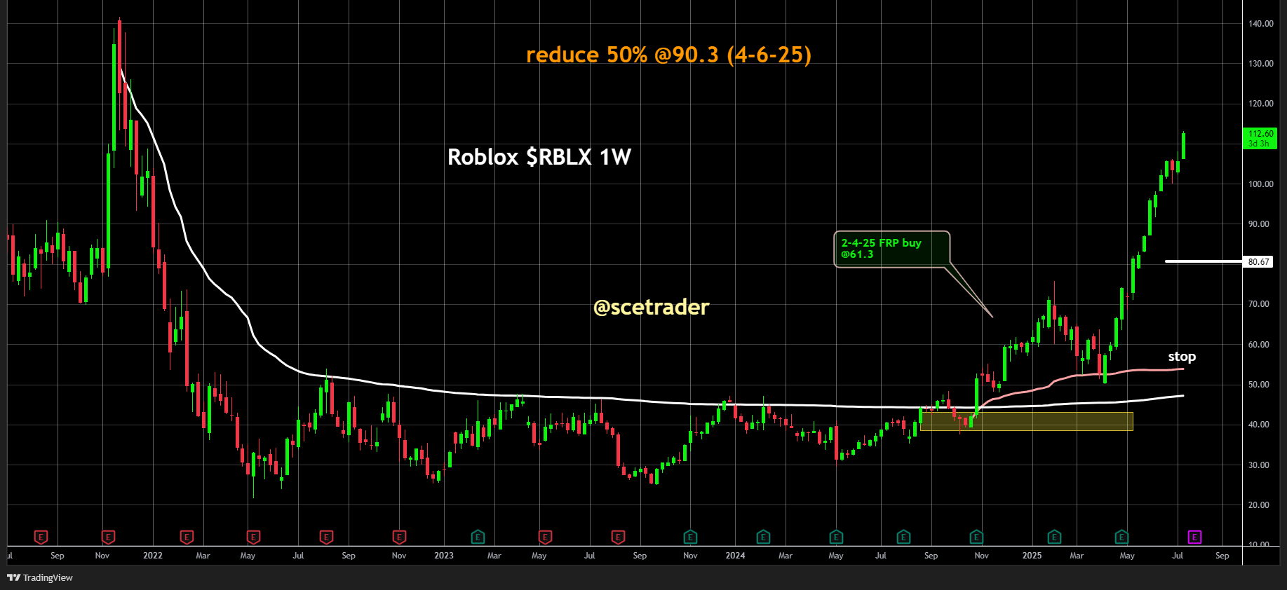 Wij zitten al op een stijging, hebben de helft van onze positie verkocht en laten de rest als free ride doorlopen. Deze ontwikkeling onderstreept dat Roblox weer de goede kant op beweegt.