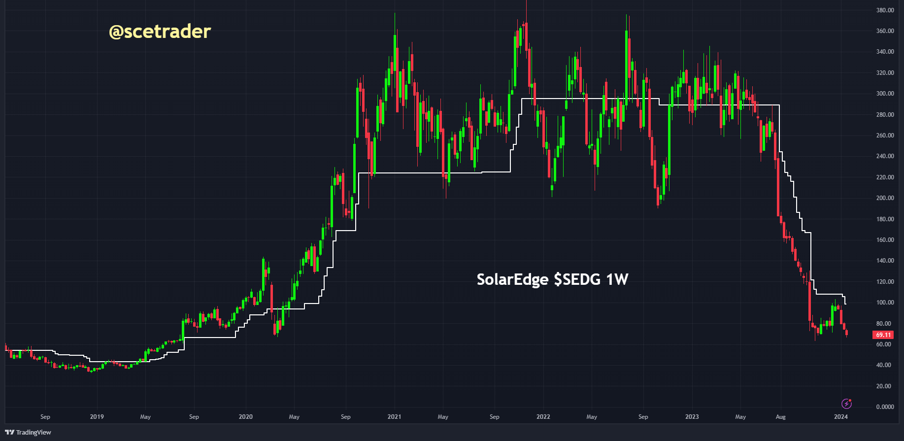 Deze bedrijven zijn misschien niet één op één te vergelijken met SolarEdge, maar waar het om gaat is dat er een duidelijke neerwaartse trend zichtbaar is in veel sectoren gerelateerd aan zonne-energie (zie ook eerdere berichten).