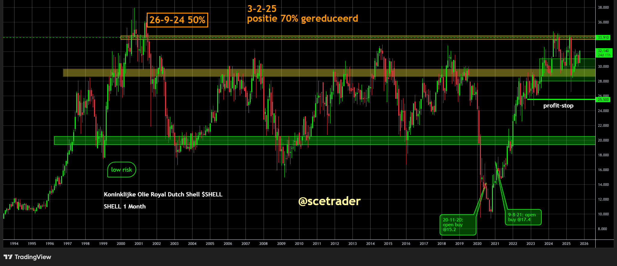 Wij hebben al langer een positie in Shell ingenomen op veel lagere niveaus. De positie is eerder al verkleind en we hebben nu een free ride.