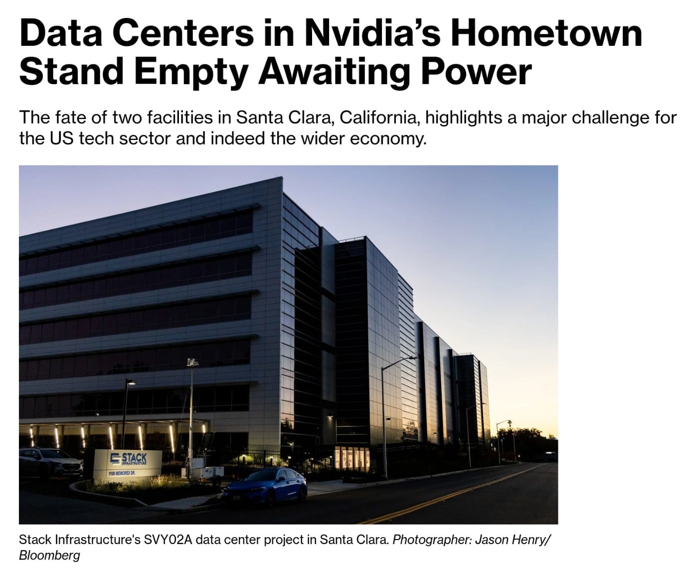 - Two completed NVIDIA data centers remain idle due to grid constraints