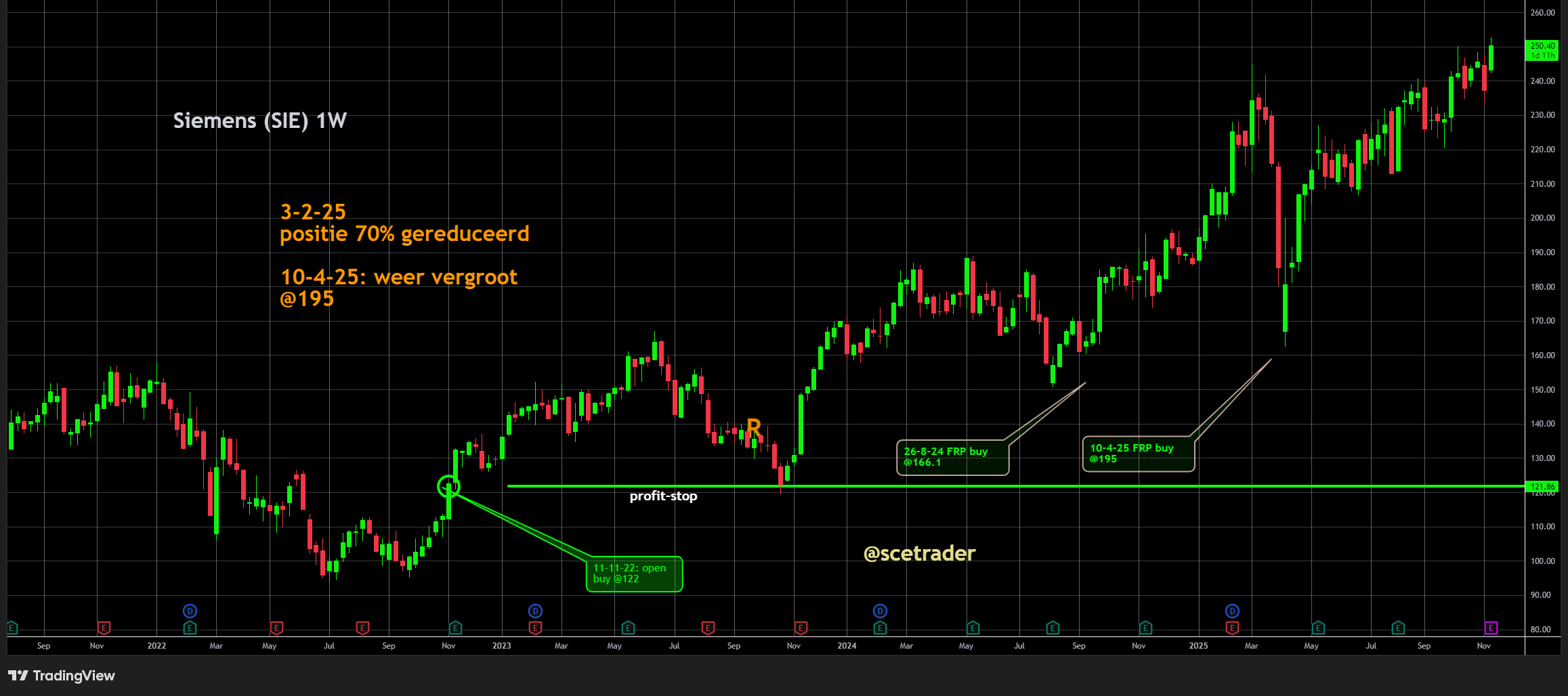 Siemens combineert recordresultaten met een duidelijke strategische koers. De onderneming versterkt haar positie als technologiegedreven industriële leider, waarbij winstgroei, kasstroom en focus hand in hand gaan. De spin-off van Siemens Healthineers markeert een nieuwe groeifase waarin aandeelhouders direct profiteren van twee sterke bedrijven. Ondanks gemengde headlinecijfers is het fundamentele beeld zeer positief. Wij blijven positief en blijven zitten op een stijging.