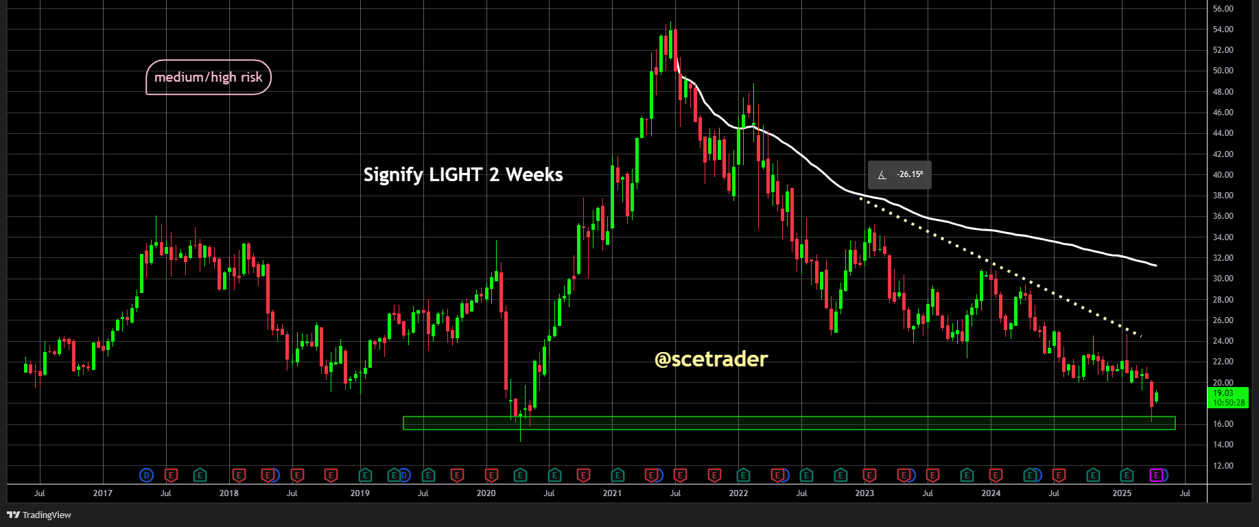 We hebben momenteel geen positie in het aandeel Signify, maar overwegen wel om het bedrijf op onze radar te zetten. De grafiek van het aandeel oogt bovendien technisch aantrekkelijk, wat aanleiding geeft op een gegeven moment misschien iets te doen.