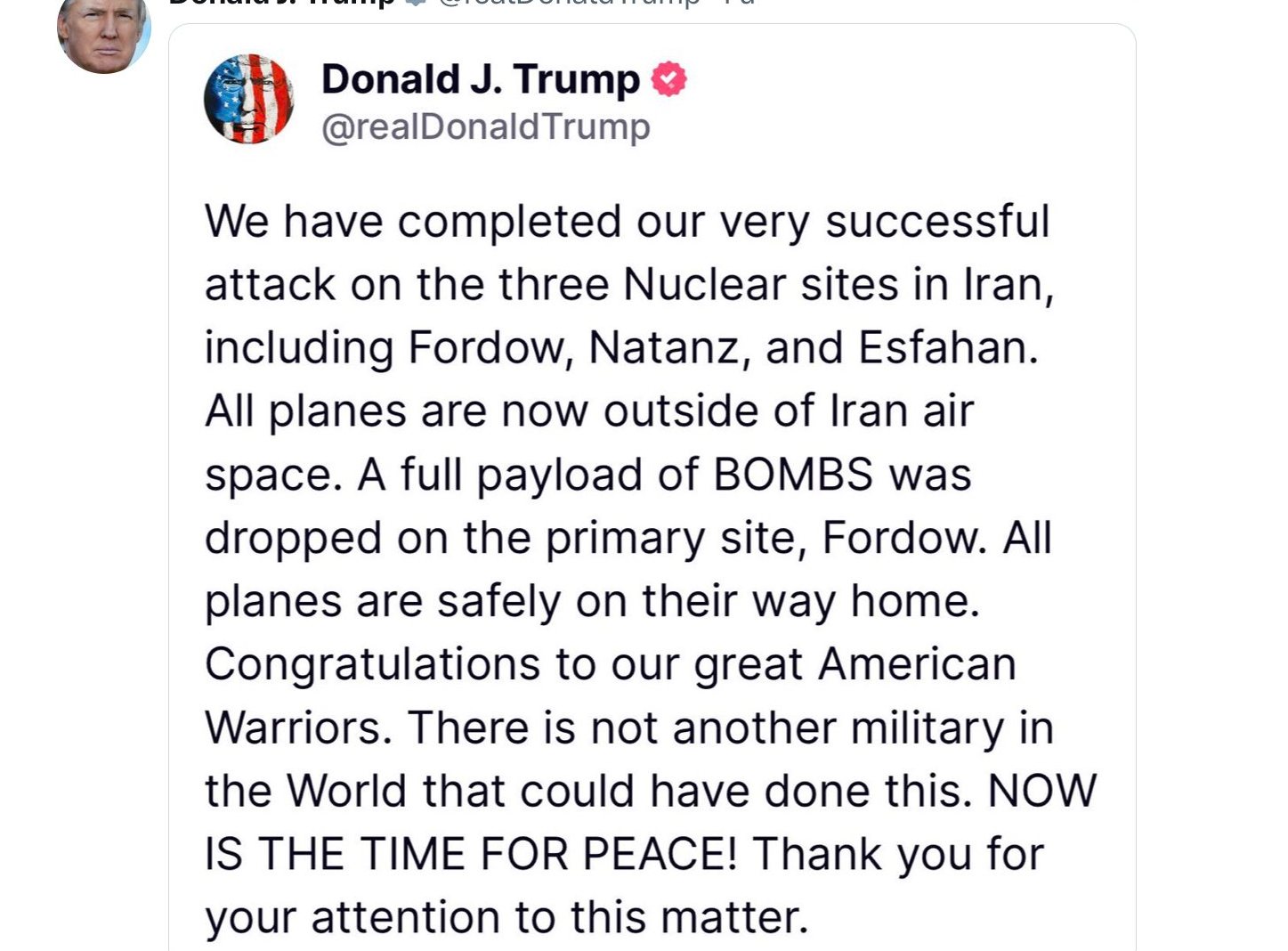 - Trump verklaart dat de sites volledig zijn vernietigd, Iran beweert het tegendeel en dreigt met zwaardere raketten op Israël.