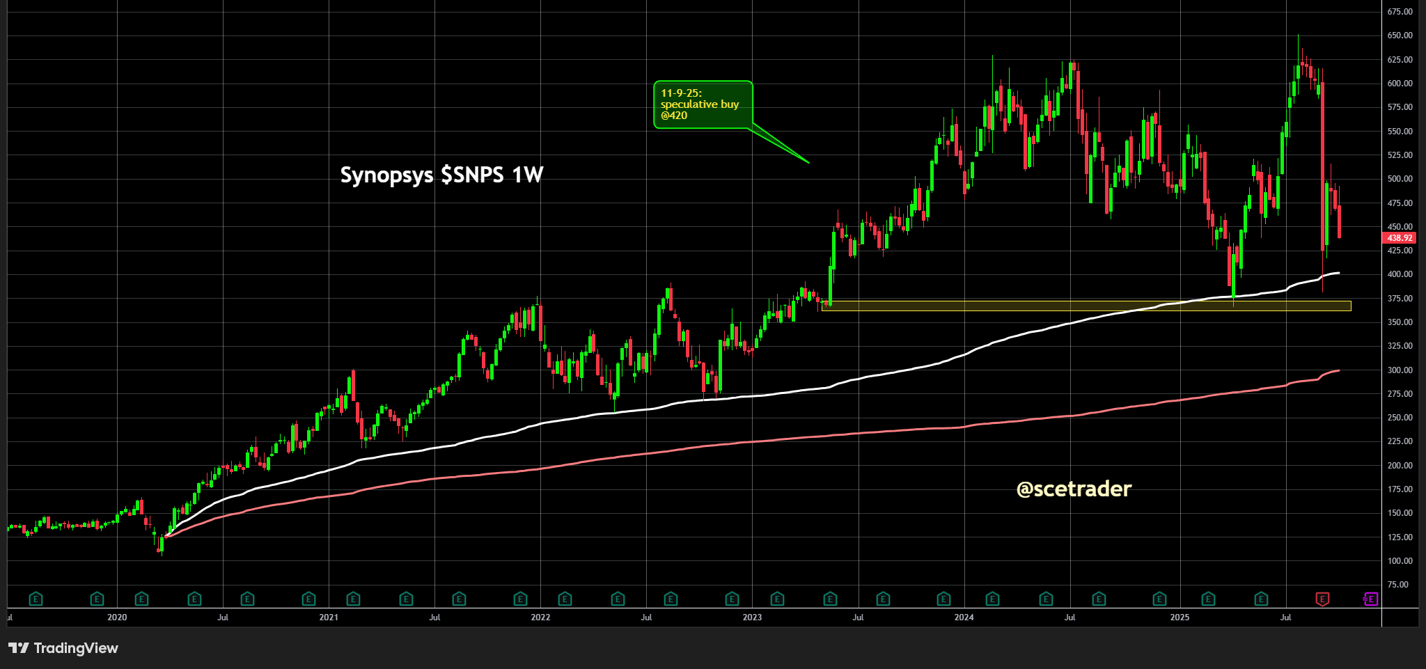 Based on VWAP levels, we see initial strong support around 400 dollars and a second technical level near 300 dollars. Should the stock reach one of these areas, we may consider adding to our position depending on the data at that time.