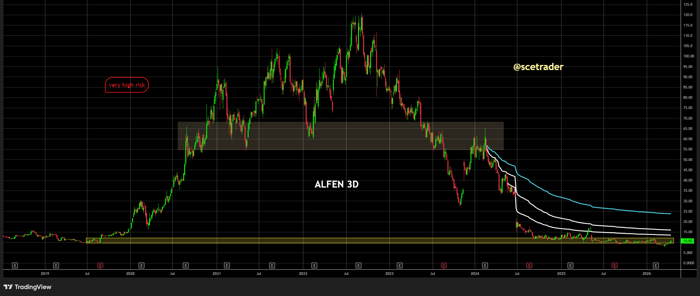 Based purely on chart analysis, Alfen appears to be in a technical recovery phase. The combination of prior extreme downside, retail-driven buying, and supportive VWAP signals underpins this scenario.