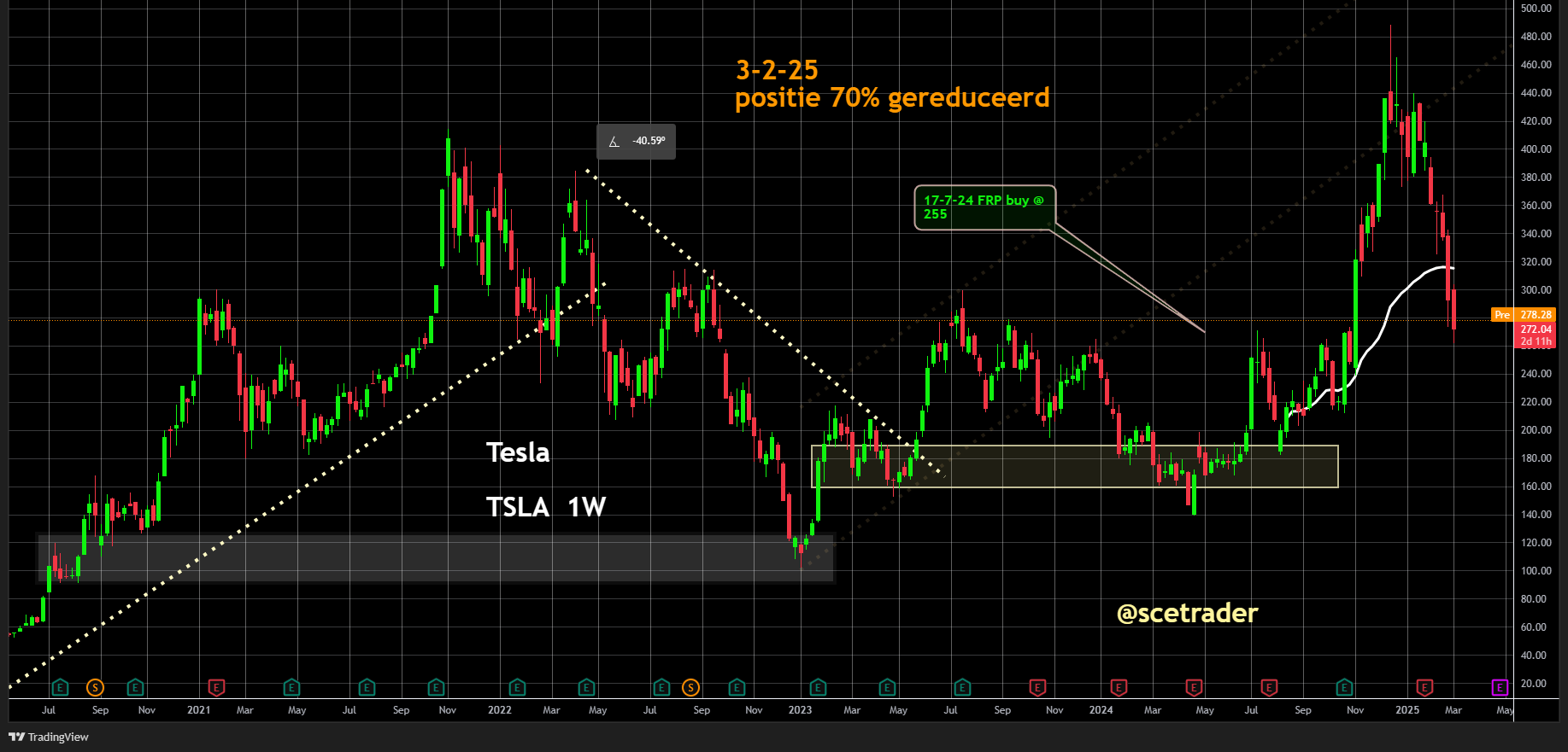 Toch sluiten we een verdere daling van de koers niet uit. Zoals we eerder hebben aangegeven, hopen we hier zelfs op, zodat we dan gericht kunnen inspelen op de toekomst van humanoïde robots, één van de belangrijke lange termijn initiatieven van Tesla. Met andere woorden, we zouden een koersdaling wenselijk vinden om goedkoper bij te kopen. Zie ook de database.