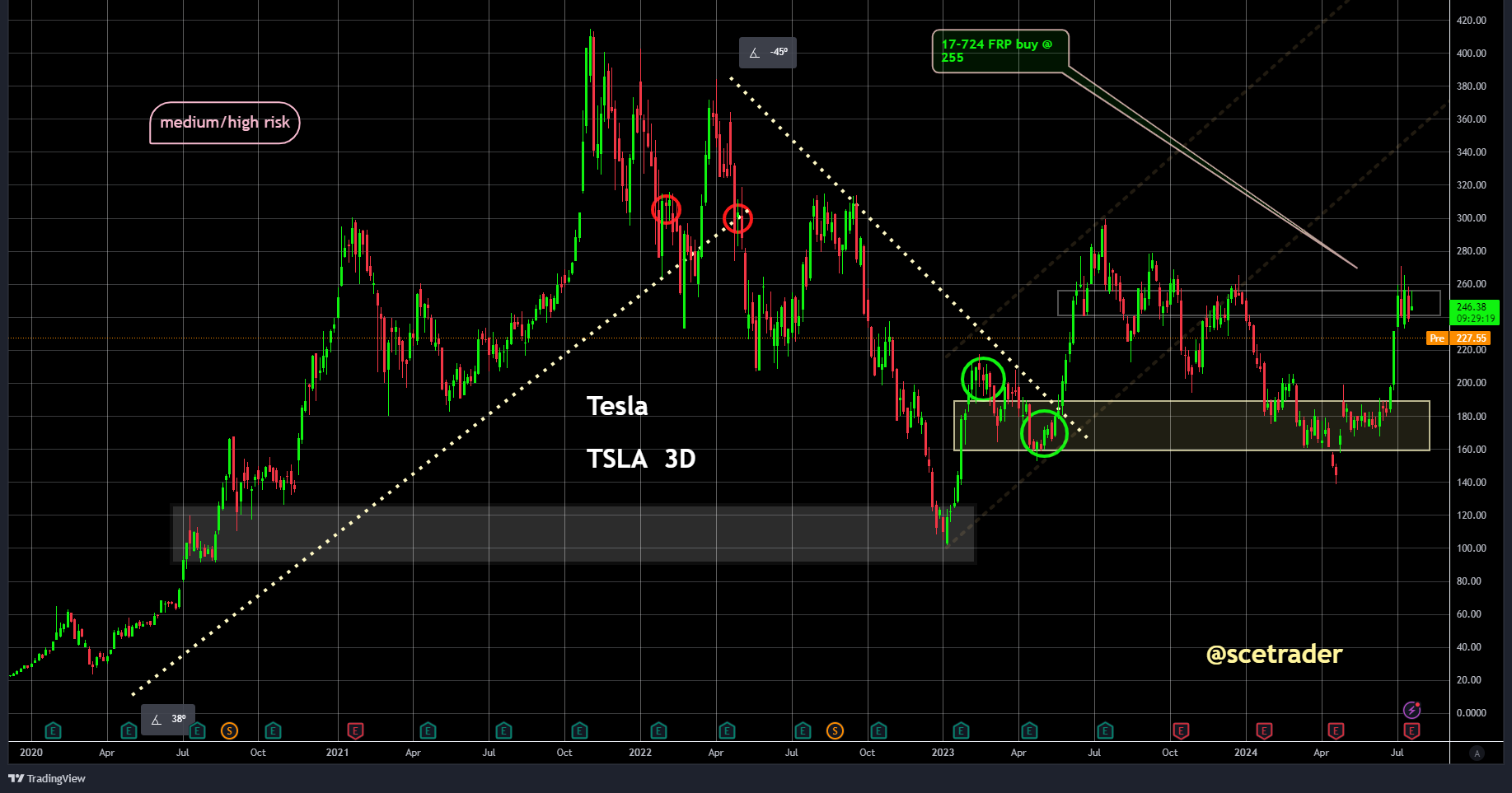 Ook blijkt de toeleveringsketen nog steeds niet op orde te zijn, wat een negatieve factor kan zijn. Dit betekent dat we voorlopig geen verbetering verwachten en misschien zelfs een verdere verslechtering van de totale markt voor elektrische voertuigen en voor Tesla.