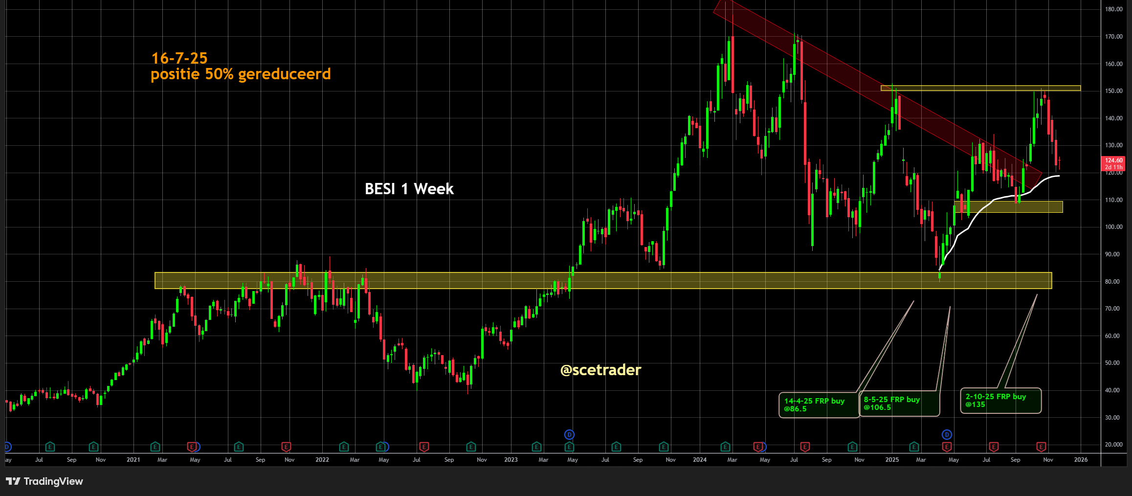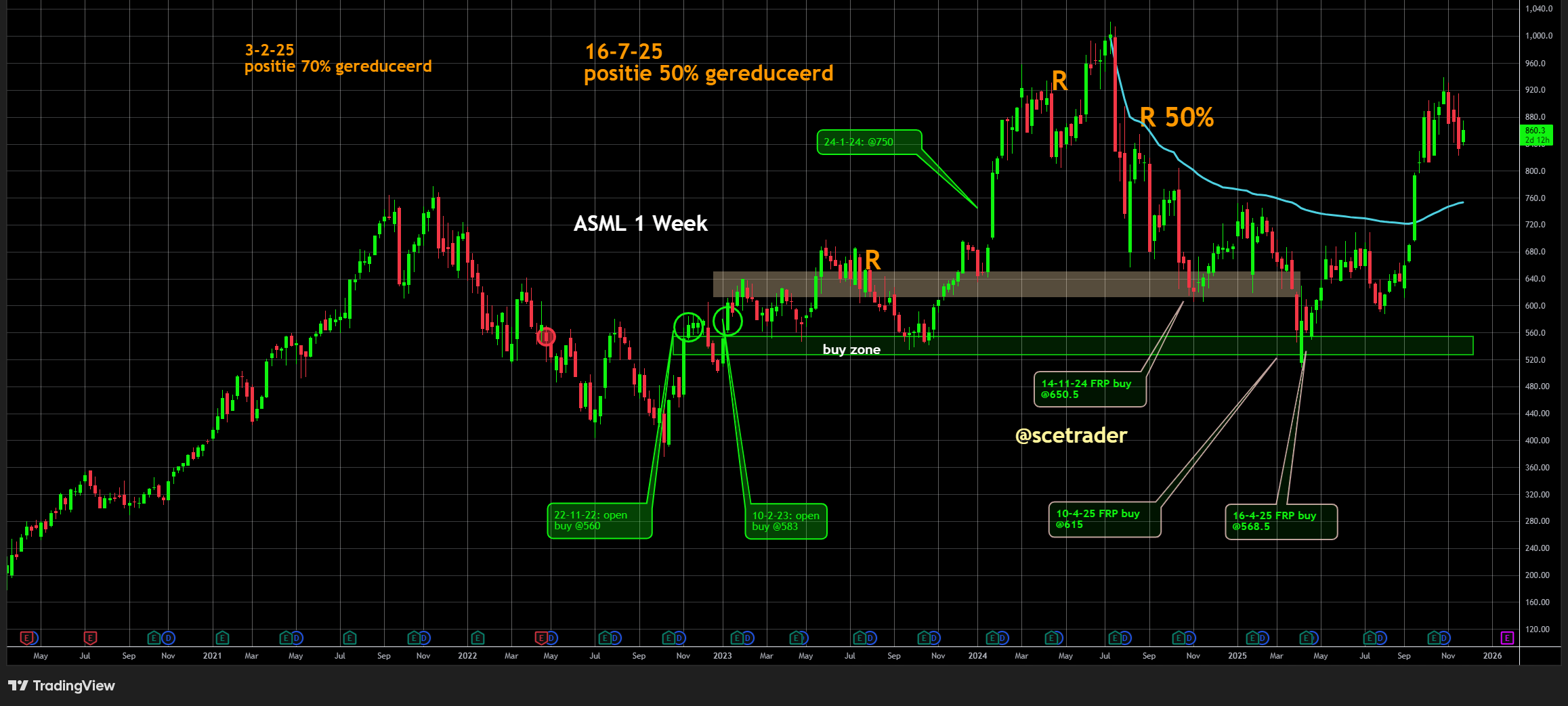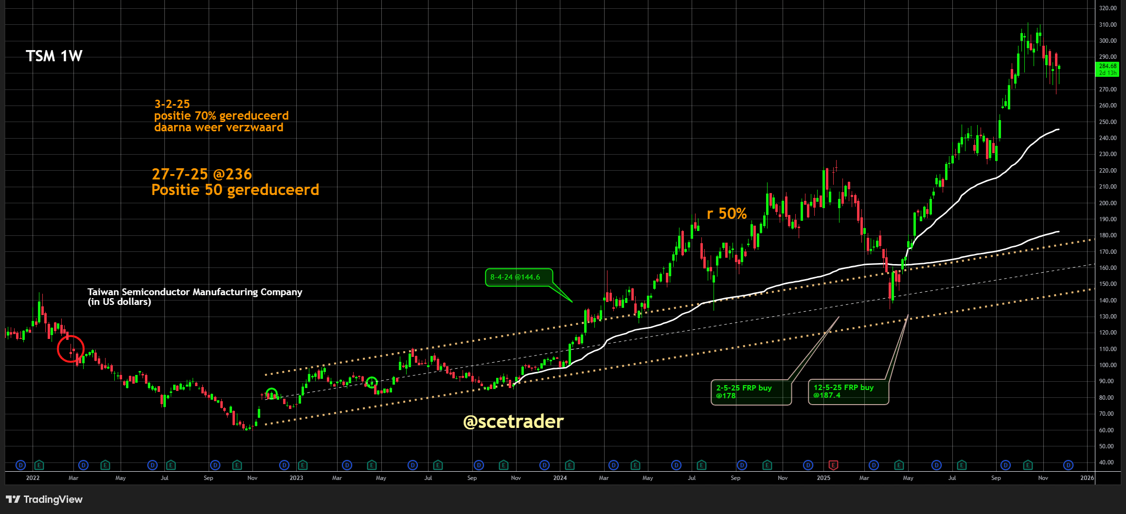 Voor de lange termijn blijft TSMC echter strategisch dominant binnen AI, 2-nanometerproductie en toekomstige A16-nodes. Wij blijven positief en blijven zitten op een stijging.